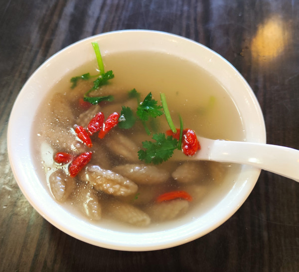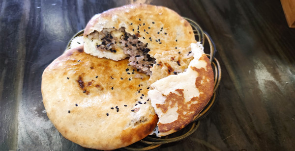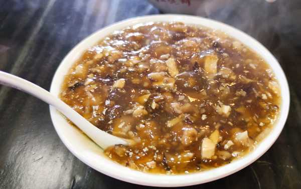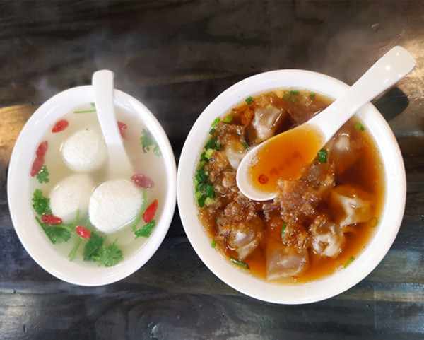 6月21日周一,上午6点30分出发,走沪昆高速共计5个小时中途服务区休息3次,上海出发时蓝天白云,神清气爽,3个多小时后进入金华段,天空开始乌云笼罩,慢慢地下起了小雨,雨越下越大,没有停止的迹象,顶着风雨到达目的地,中午时分先解决温饱,直接导航到缙云烧饼总店(导航显示缙云烧饼总部),点了当地的特色小吃:烧饼,燕皮馄饨,敲肉羹和豆腐丸子,共计41元,非常美味好吃.