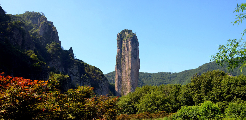 浓雾转眼散去,仙都景区最著名的山峰----鼎湖峰显出了他那雄伟的勃勃英姿.