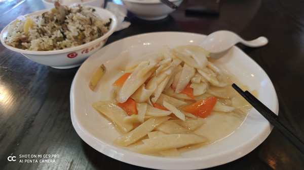 游览了丹霞小赤壁,仙境朱潭山及收费的鼎湖峰公园,我自认为可以了,精华已经尝遍,昨天去了一半的倪翁洞,还有独峰书院, 估计景色差不多,这二个景点我就不去了,再次来到缙云烧饼总店,点了米筛丸,咸肉竹笋,缙云茭白和特色菜饭.