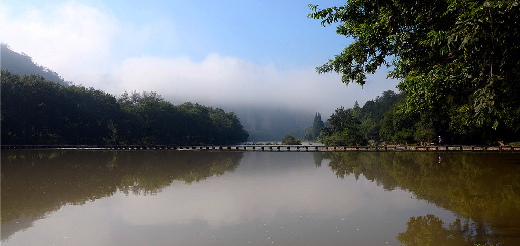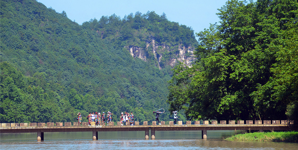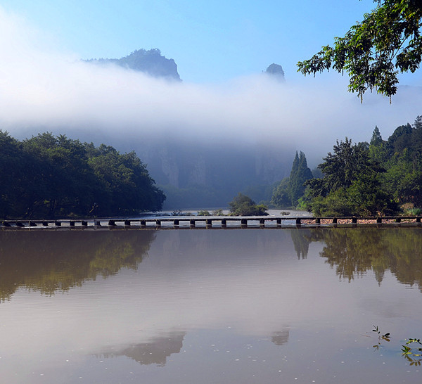 离开倪翁洞,去朱潭山探探路,走到朱潭山狭窄的小石桥,也是明天将要表演的区域,哦!这块地方好漂亮耶!我认为这里是整个仙都景区最美的地方.