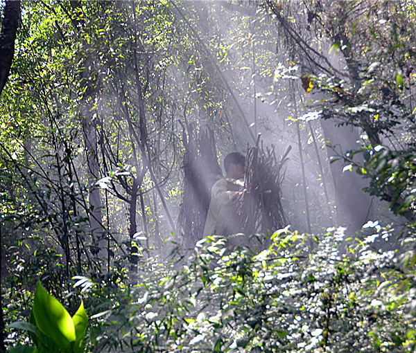 昨晚客栈老板叮嘱我清晨5点下楼看表演,他说晚了就不好看了.今天一早准时下楼,老板告诉我今天雾太大,没有背景表演不好看,雾散以后再开始表演并把我带到实景地.