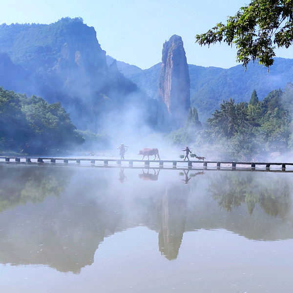 老农牧牛的表演地点朱潭山是仙都景区最漂亮的地方,值得多花时间,特别是早,晚景色最佳,日出日落都很美,很多摄影师都在这个地方等待美景的出现. 小赤壁一定要打卡的.鼎湖峰90元的门票我觉得有点贵,那个"天下第一笋"石柱,在鼎湖峰公园外面的很多地方都能一览无余,公园里面并没有多少令人难忘的美景,鼎湖峰公园唯一让我叹为观止的就是那个第一湾.其他SOSO.