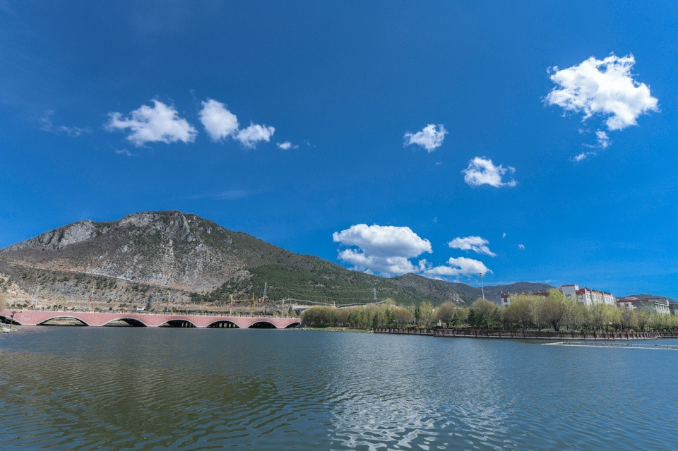 4月的迪庆处处都是充满诱惑的美景,连香格里拉古城门外随便一个河流都是那么的唯美。这个地方就是香格里拉市区的龙潭河了,当地人经常在这里休闲游玩,于是就给它取了一个好听的名字,叫做龙潭湿地公园。