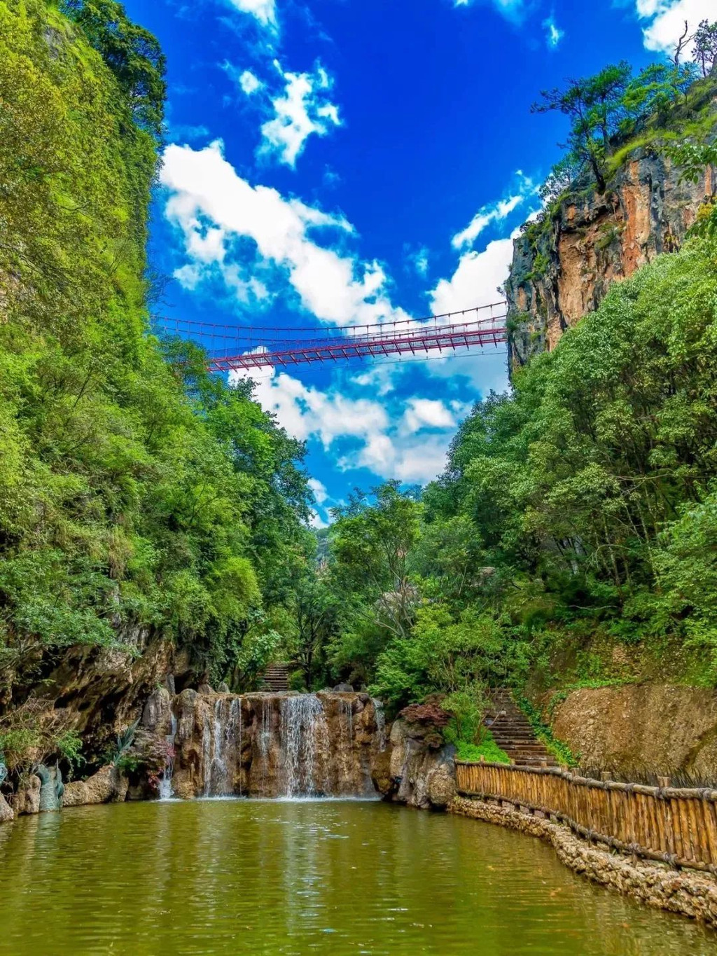 潺潺的溪水,纯净的碧空,还有摇曳的花枝,天地为画布,自然为颜色,让人不禁想立即前往老君山黎明景区,领略不一样的山涧风景,回归自然,感受大自然的鬼斧神工。