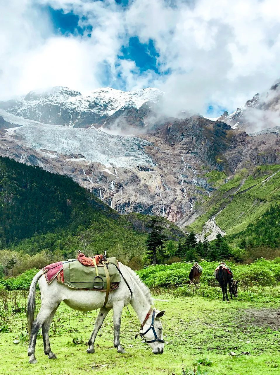 在哈巴雪山,你可以邂逅牧场,海子和雪山,一路风景如画美不胜收,你也可以骑马穿越雪山。