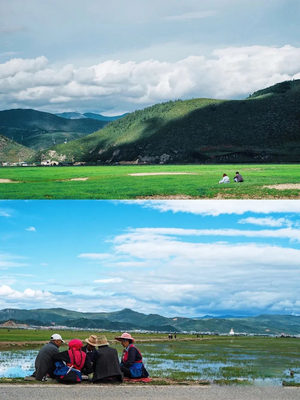 到了纳帕海,你会更懂得什么是「人间理想国」,白云悠闲,人们在一望无际的碧绿草原上漫步,聊天。