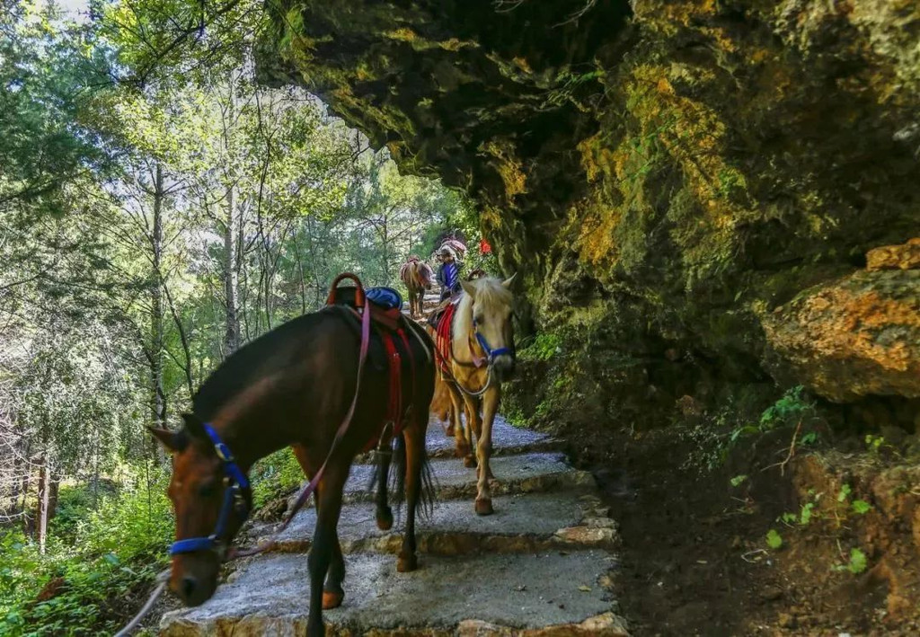 马夫牵着马匹,行走于林间小道上,听着“得得”的马蹄声,仿佛走进了绵延不绝的马帮岁月,在马锅头的带领下,一起来体验古时马帮赶路的艰辛。