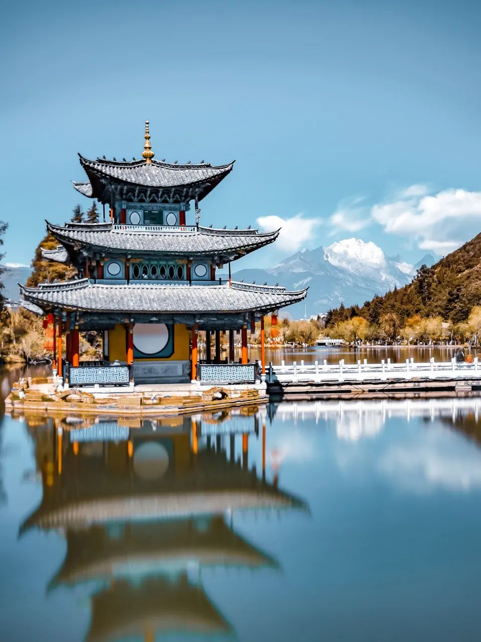 五孔桥、得月楼、玉龙雪山及黑龙潭中的雪山倒影,成了丽江的一张名片。