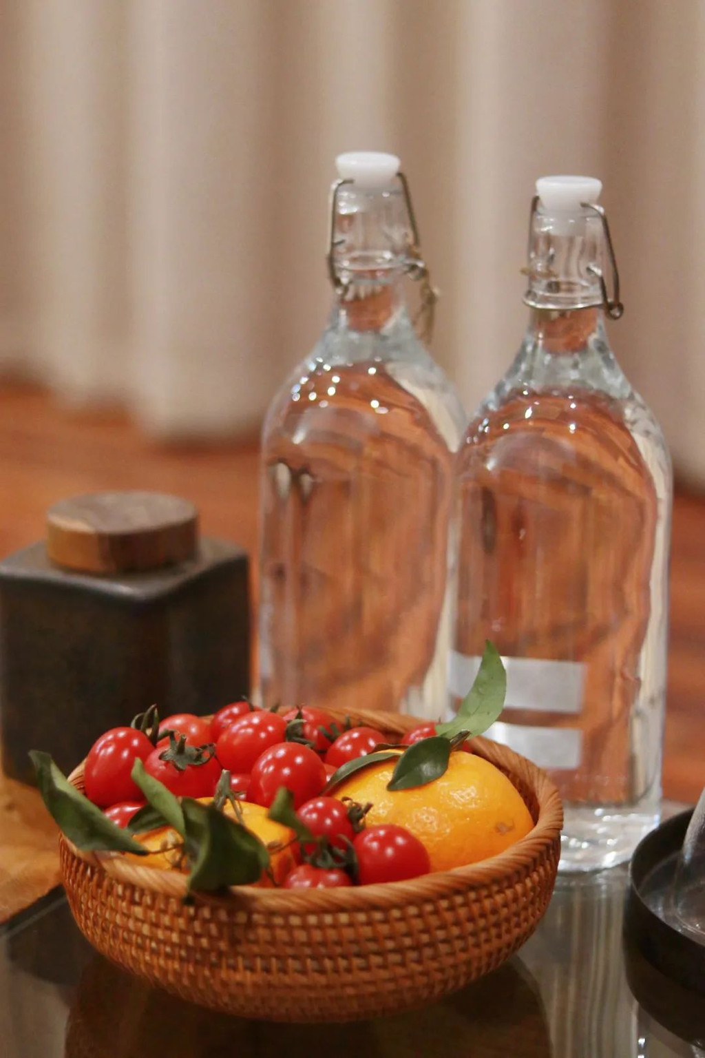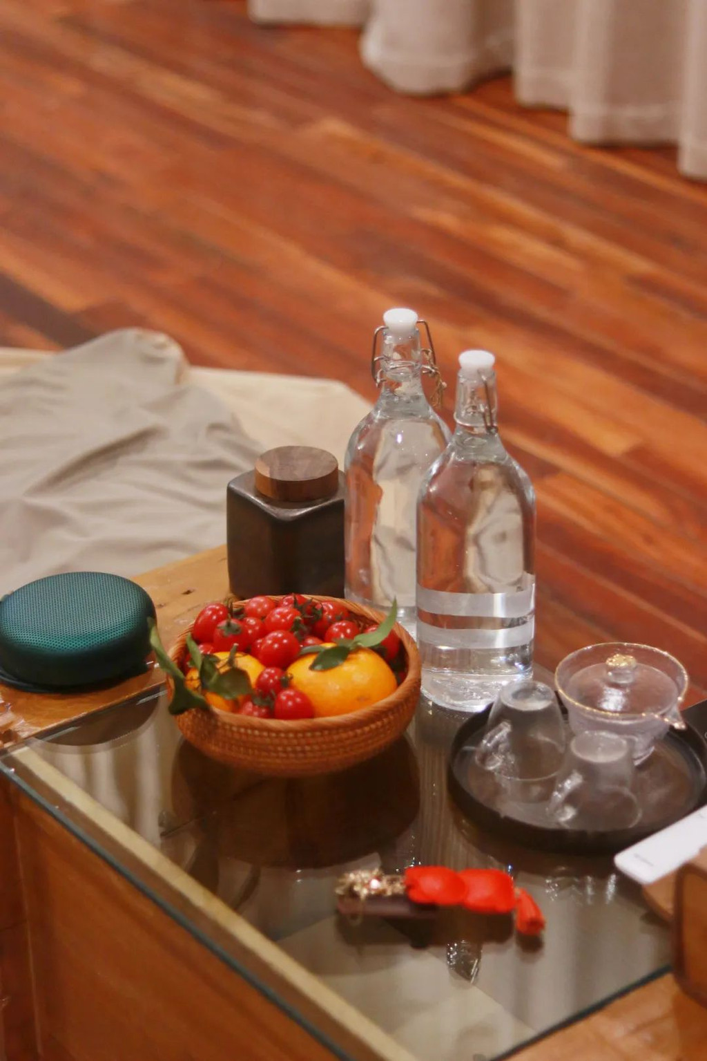 房间一共有4个玻璃水瓶,这种水瓶在泰国的酒店极其常见,却鲜见于国内酒店。据说都是直接到远处的雪山脚下取水,水质清甜甘洌,随时可以联系工作人员补充,最重要是消毒后循环使用!