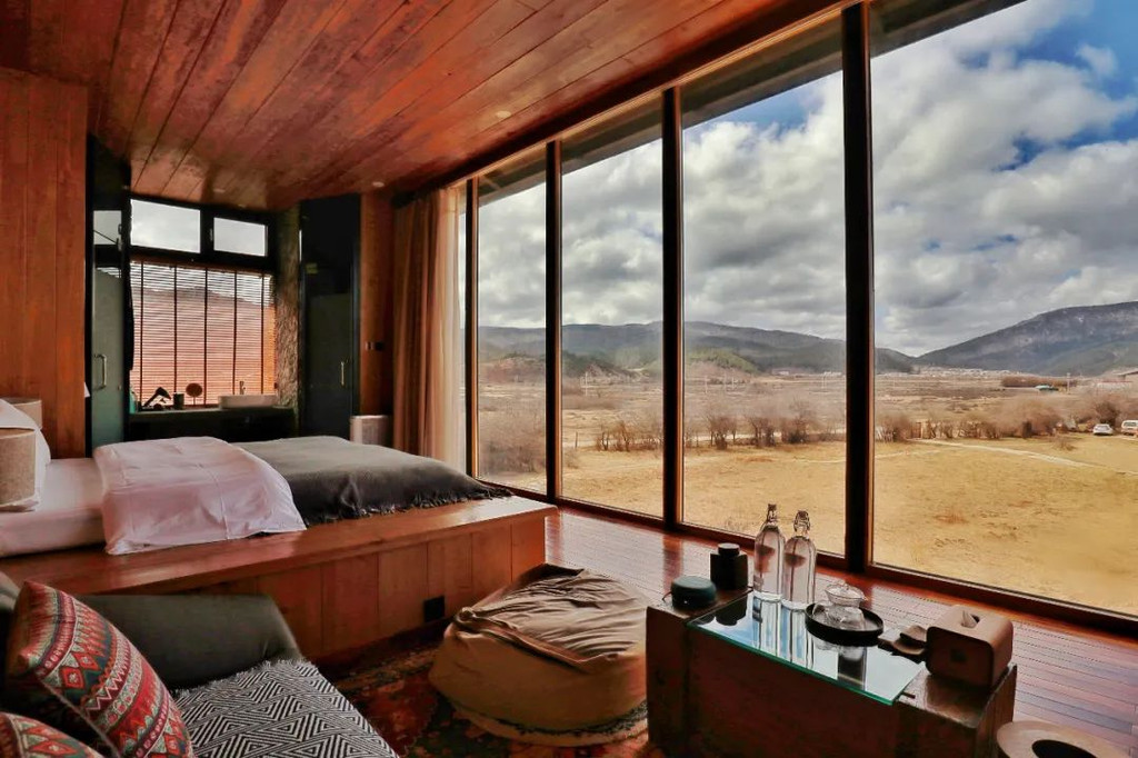 达拉野奢牧场酒店位于离独克宗古城大概20公里的一片私人草场内,远眺雪山;市区出发的车程在20分钟左右,就算不是自驾车,预约酒店的接送车也很方便哦。