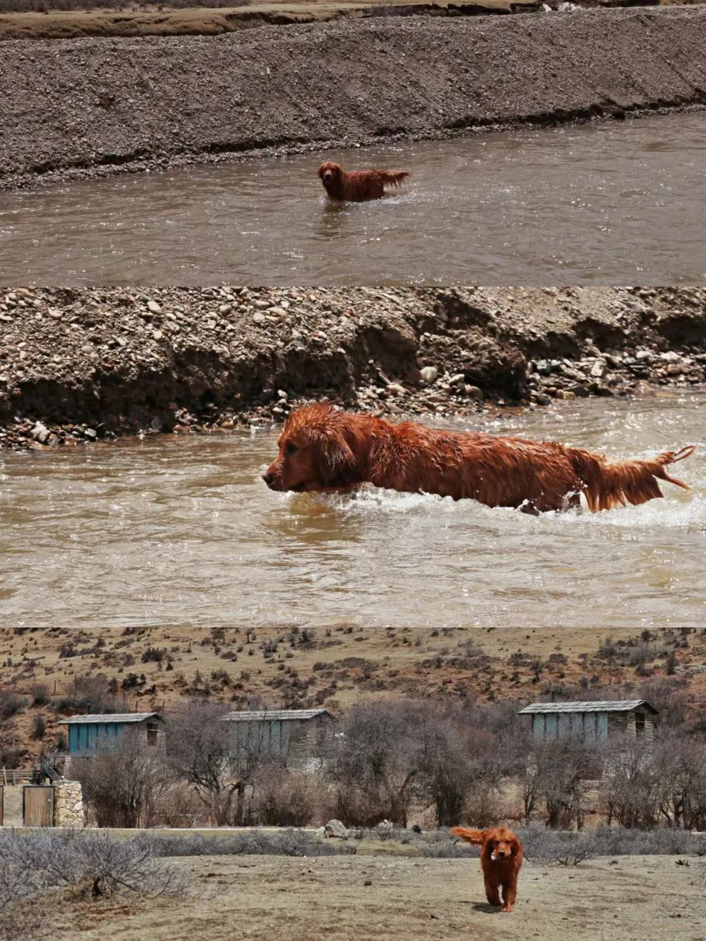 几乎所有来达拉牧场的旅行者都和这“小小两口”一起到河边散步过。出了酒店大门,穿过高原低矮的荆棘灌木丛,走5分钟就能来到自然生成的雪山小河旁,看缓缓流过的冰川水,再看活泼的狗子在河里扎猛子然后找不到上岸的路,嘻嘻哈哈。