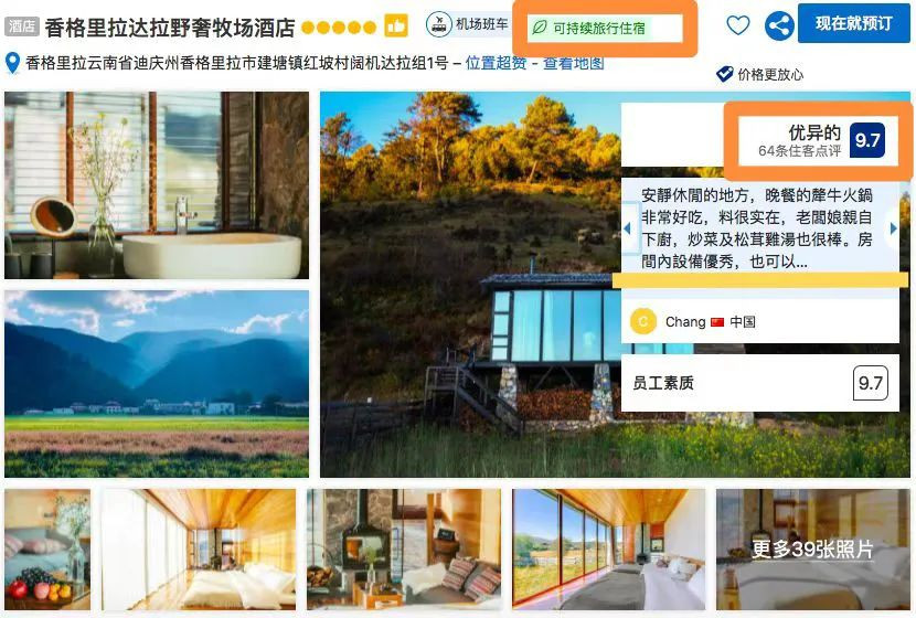 找到香格里拉达拉野奢牧场酒店时候,除了“可持续旅行”标识,以及和酒店名字很匹配的价格以外,我第一反应是被高达9.7的评分吸引的!