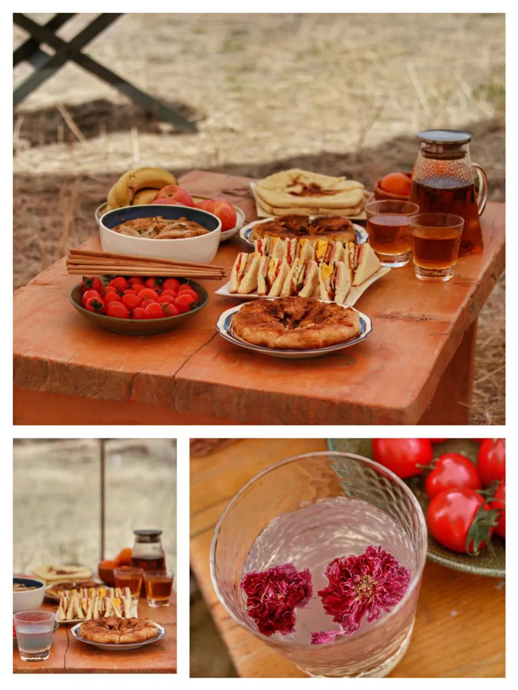 新鲜采摘的本地圣女果,是我生平吃过最新鲜多汁甜美的圣女果!简单的火腿三明治,还有当地人才买得到的有机大玫瑰花泡的茶,我能说此情此景太美好了吗?