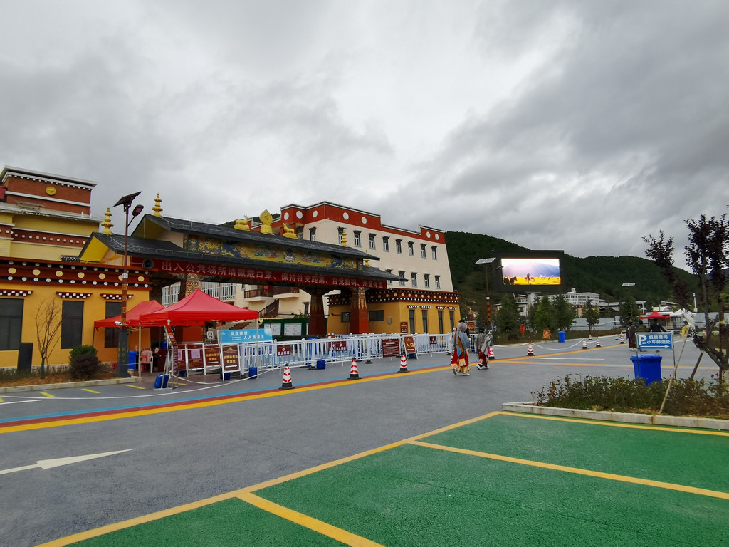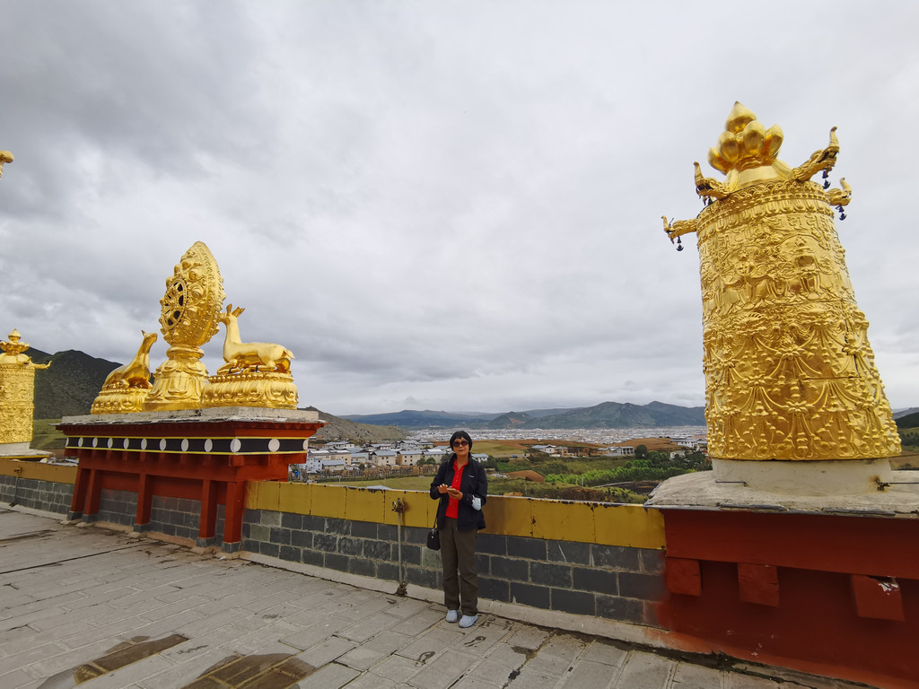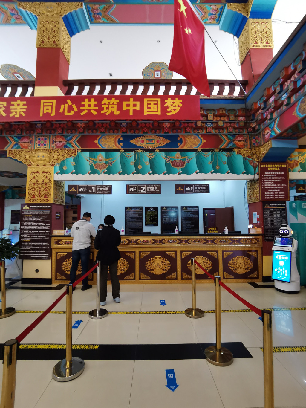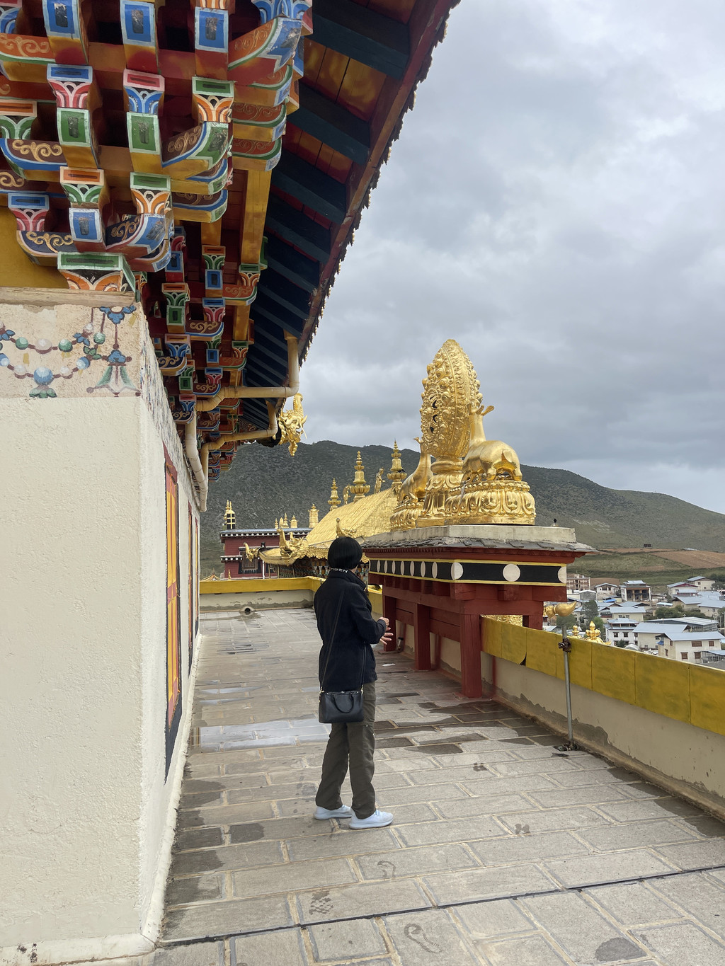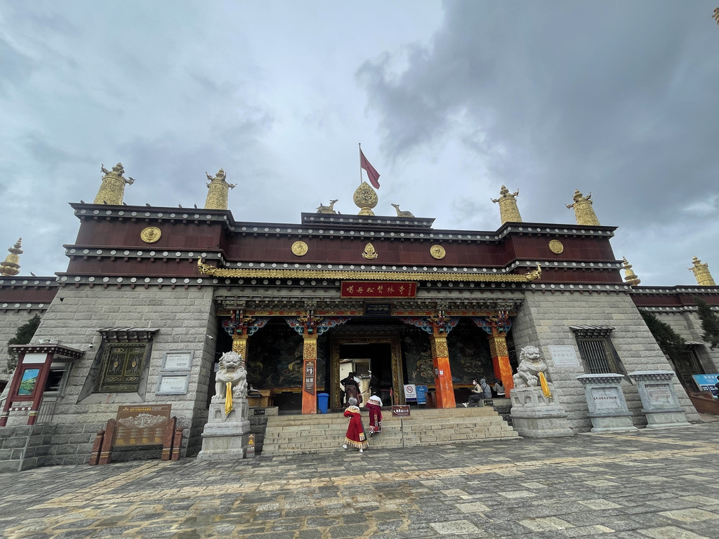 16:10开车去噶丹松赞林寺。因为距离很近,不到10分钟就到了(门票:55元/人,摆渡车:35元/人)。
