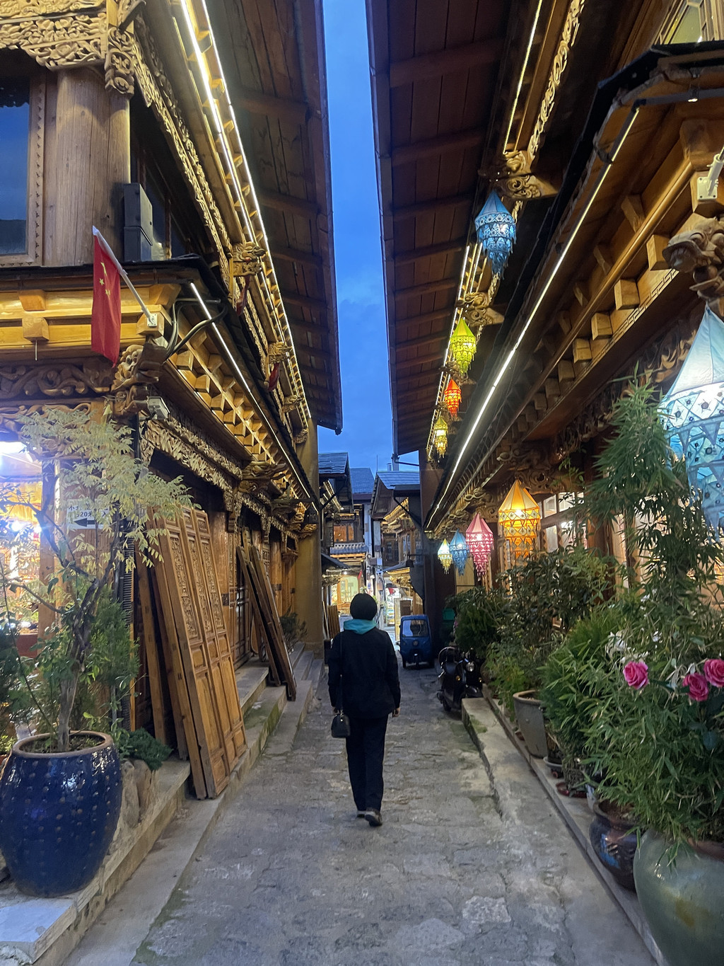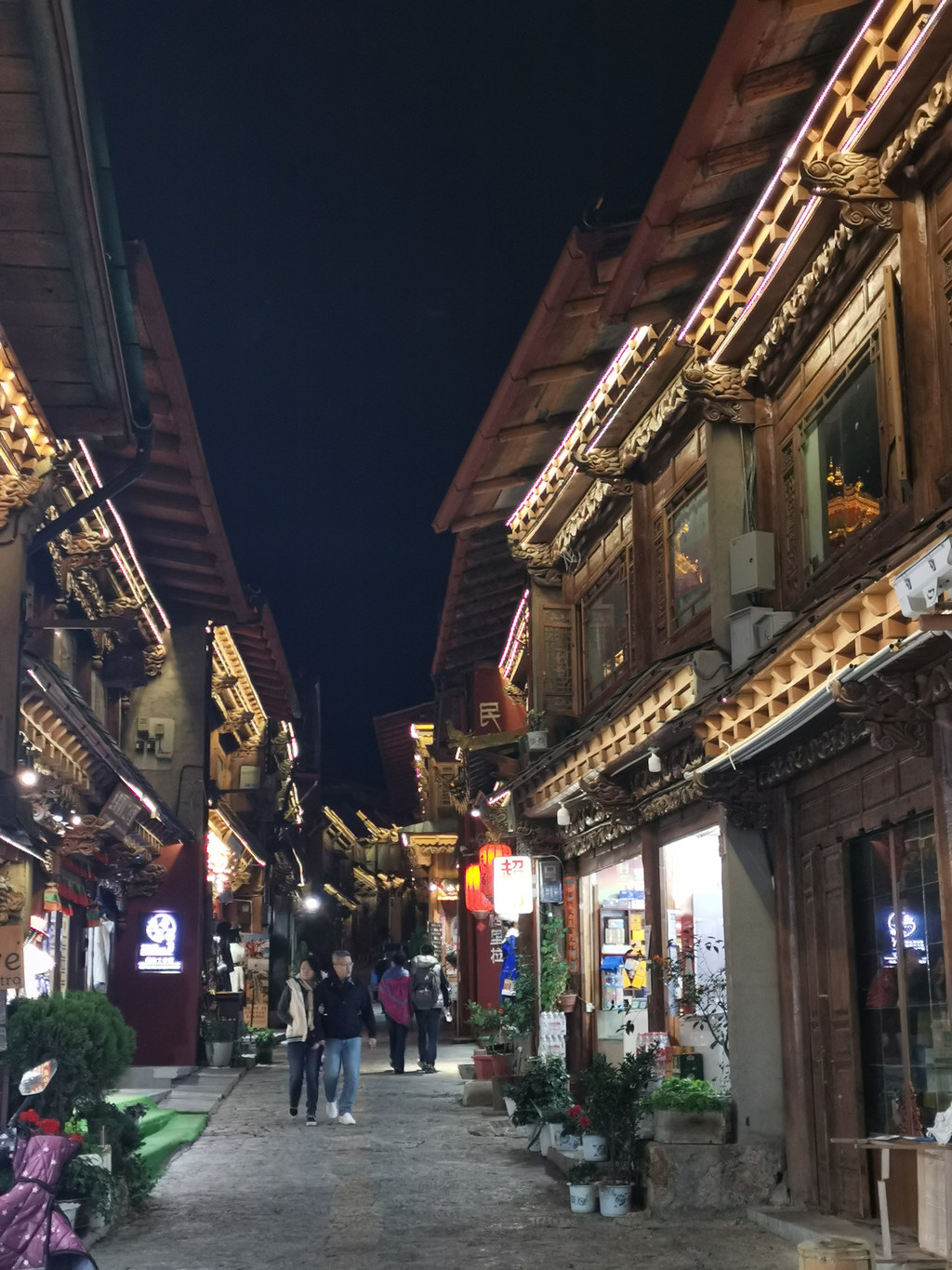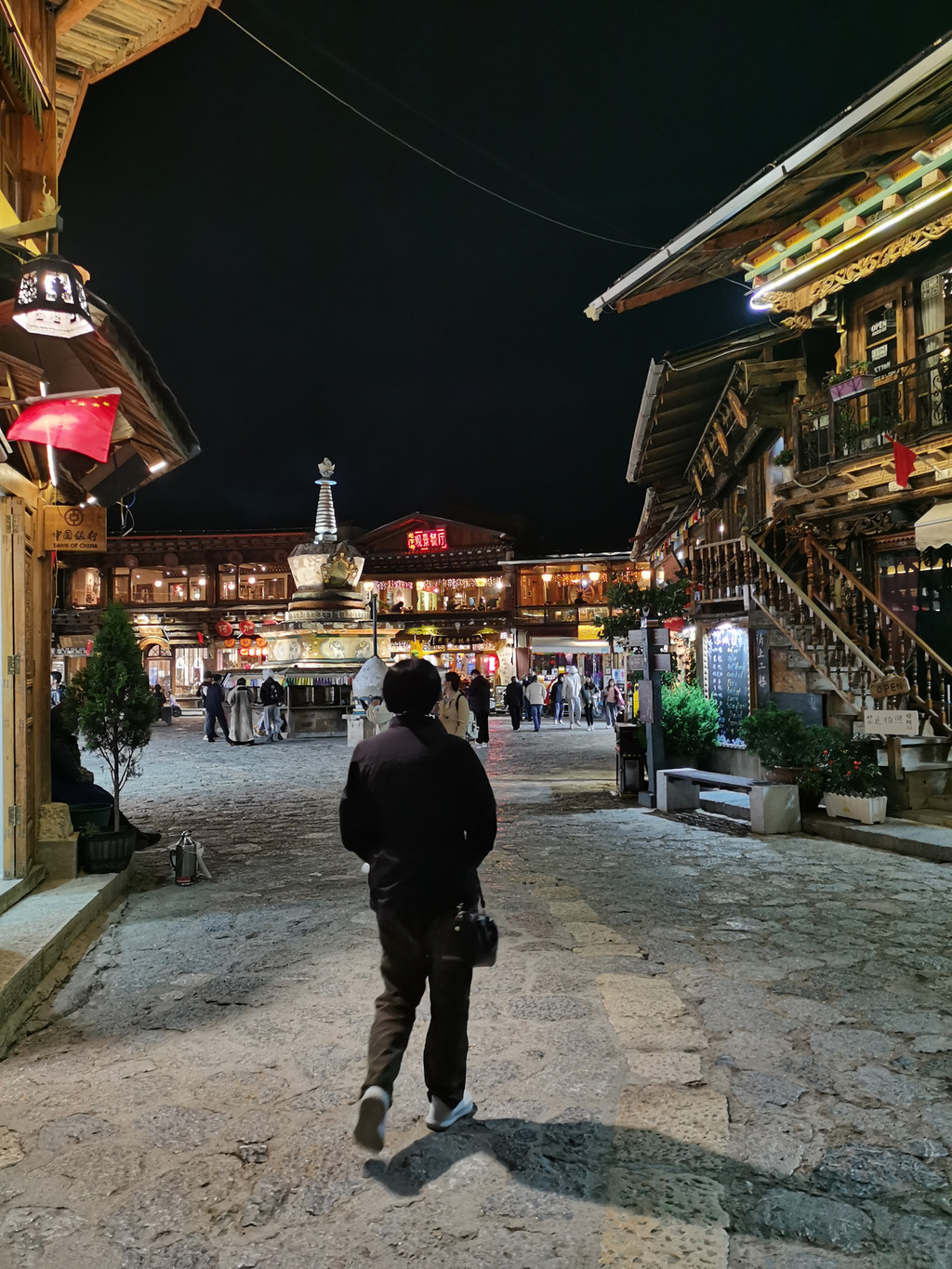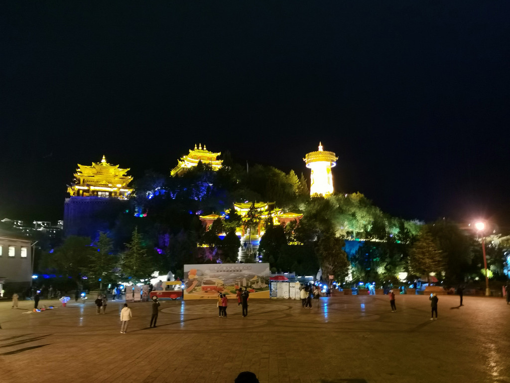 18:55离开噶丹松赞林寺,19:12到达独克宗古城(停车:5元)。
