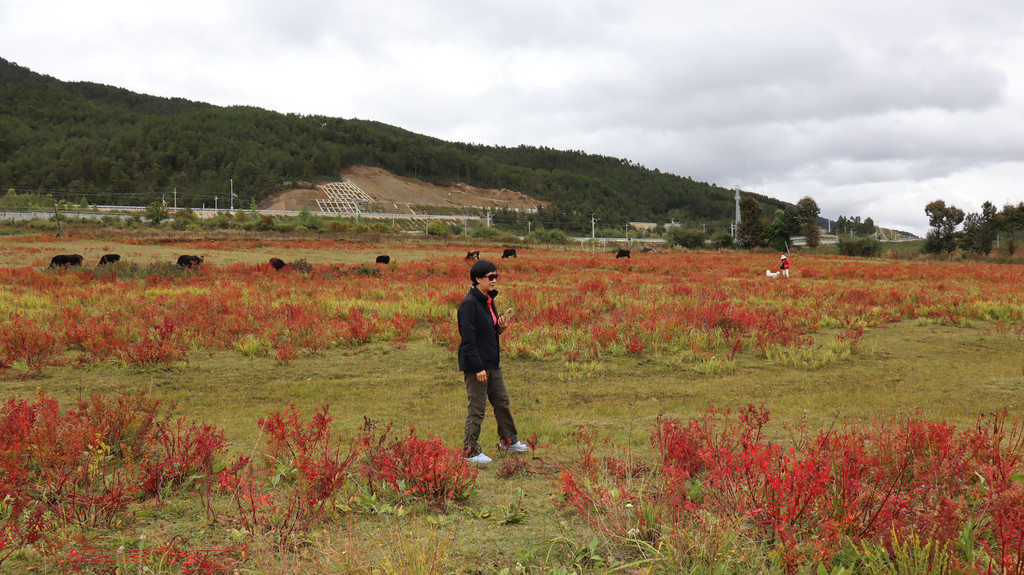 继续前行2km后,路右边才是花海(大狼毒,一种草)