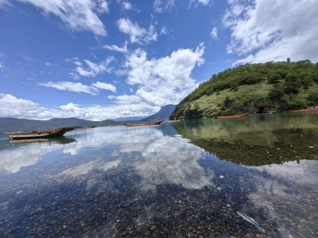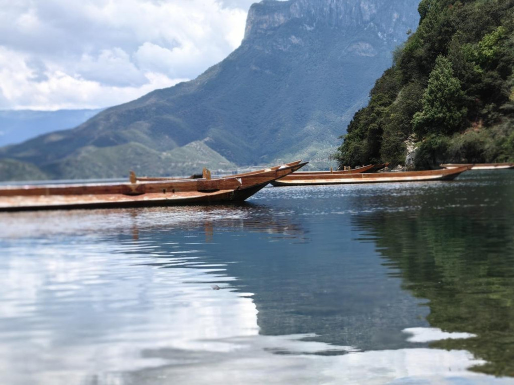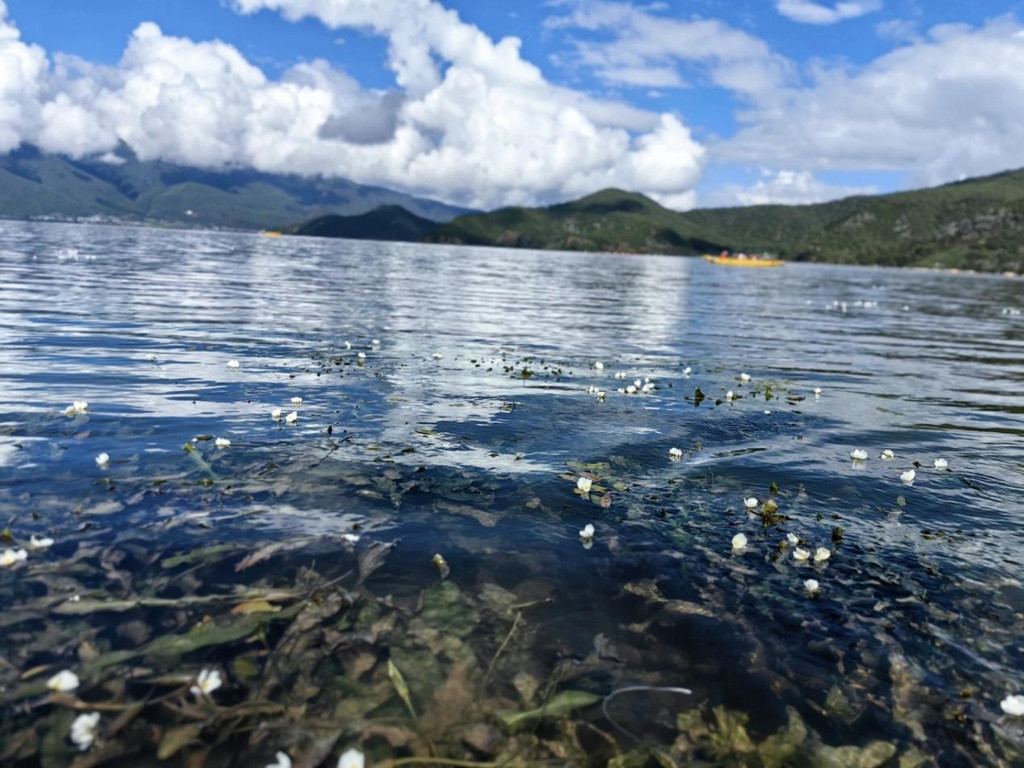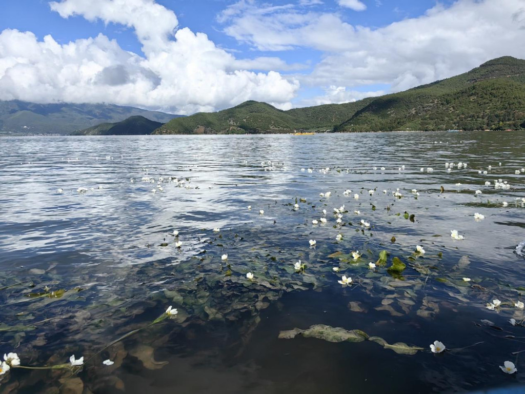 一早起来发现艳阳高照,跟昨天傍晚的雨淅淅冷飕飕简直像两个季节。这段时间正是泸沽湖上看水性杨花的季节,找民宿老板帮忙订了猪槽船的船票,注意只有少数几个码头出发才可以看到花海哦。