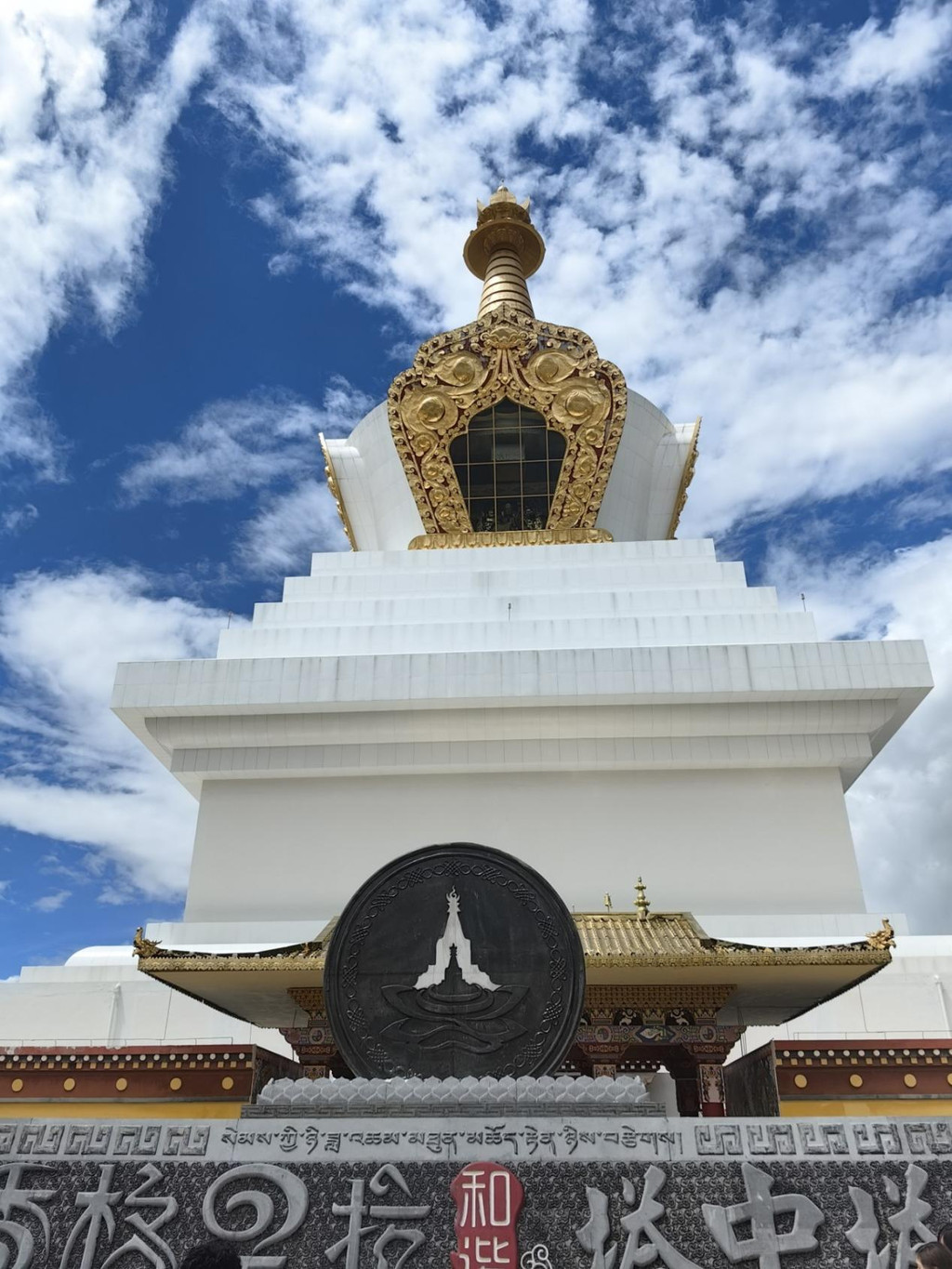 进入香格里拉,走完迎宾大道就有一座高大巍峨的白塔,叫做和谐塔中塔。据说是世界上最大的藏传佛教白塔,免门票,进入不得戴帽子和墨镜,尊重当地习俗哦。