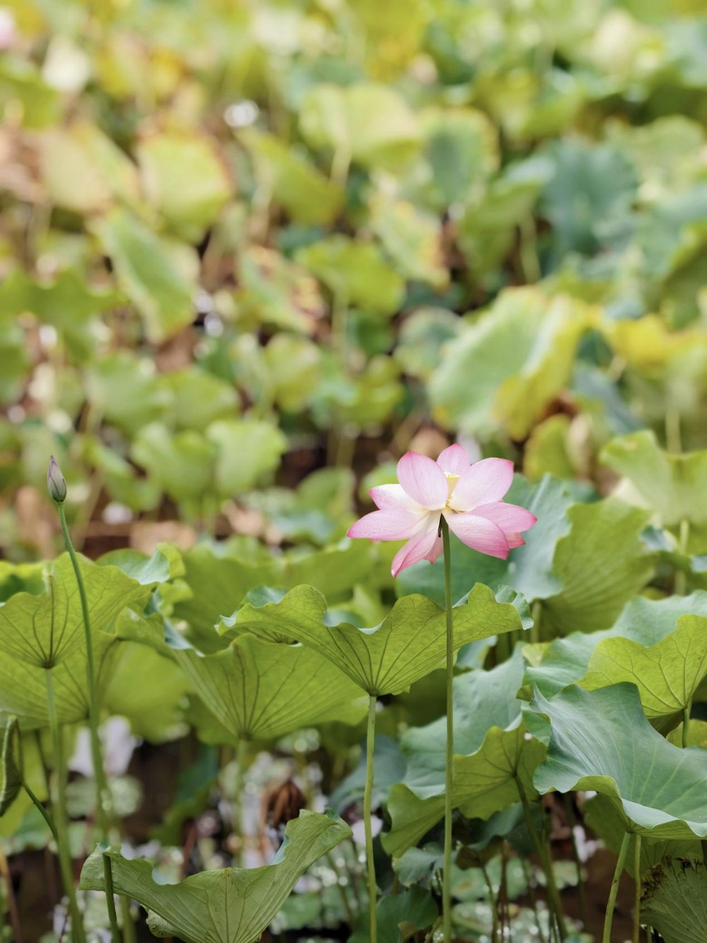 想去金鳞沙滩的话把车停到靠近核桃村的这个停车场。进了大门左手边有一大片荷花,但是开得并不算很好,下着雨还是去拍了旅行的第一波照片。