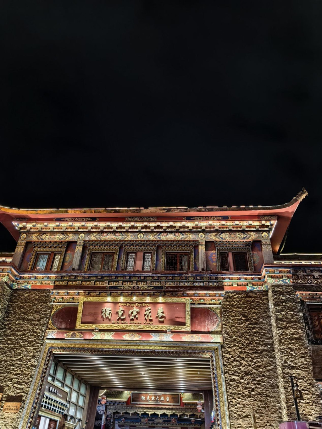 古城最多的是藏服跟拍写真店,服装租赁加妆造50元可以搞定,我逛在路上选好了一套衣服准备明天也来变身藏族姑娘。另外还有很多牦牛肉火锅店、文创纪念品店,其中也有藏绣文化艺术院,可以进去免费参观。