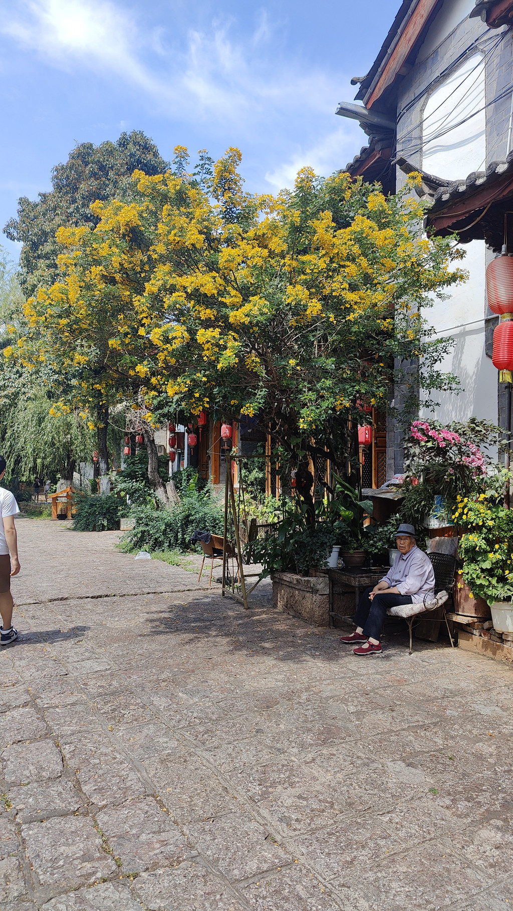 坐了一会顺着巷子往深处走去,路过四方街全是人,大概我是有点不适应人群的热闹喧嚣的,只想找一处清净的地方待着,急走几步顺着巷子一直走,感觉在往上爬,地图一看原来是在往狮子山上走。