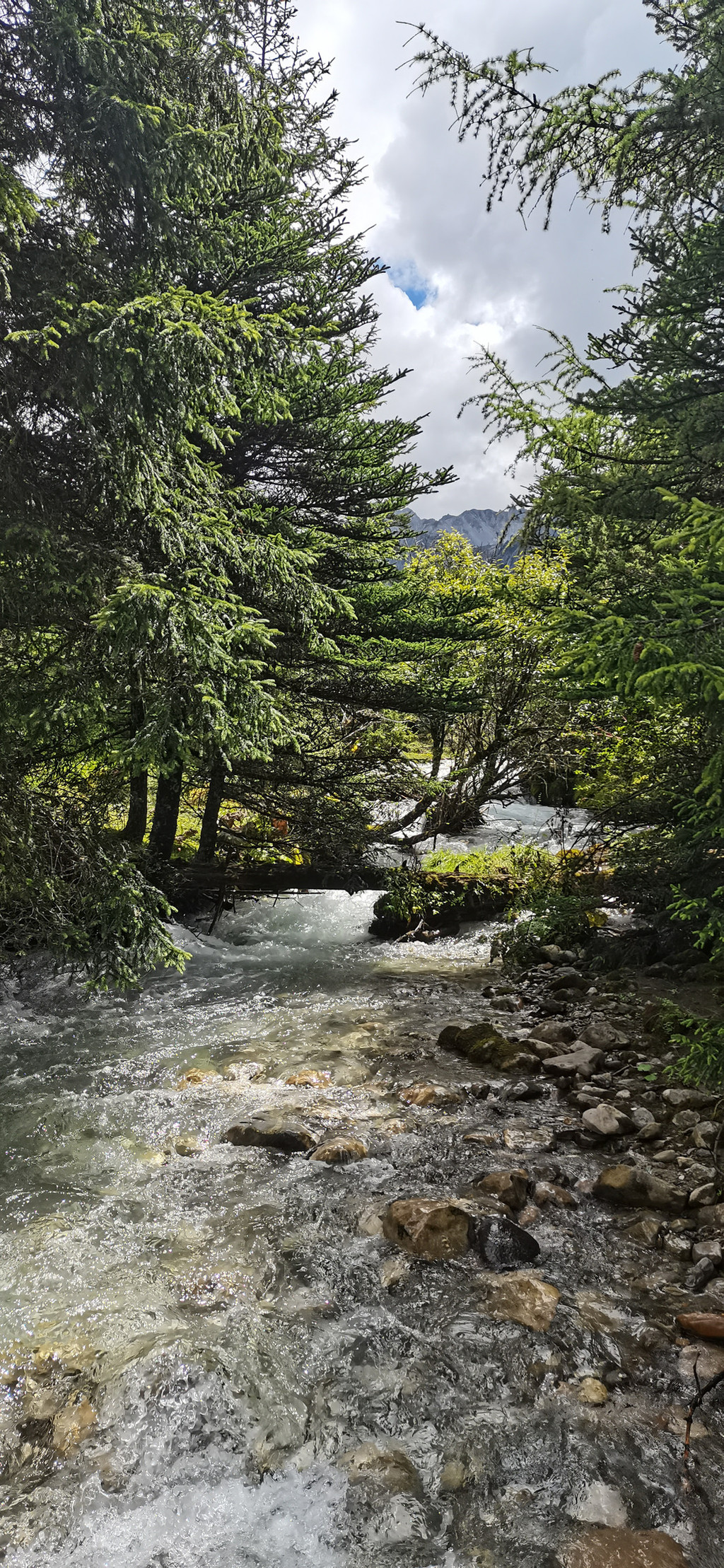 车到山脚,无路可走,靠双脚丈量世界的时候到了,因为地处高原的原因,不能太嘚瑟做剧烈的活动,在自然面前你必须怀有敬畏之心,老实的慢慢往山里走、往高处爬。因为一开始也没有准备,只是抱着路过来看看的心态,所以没什么准备,休闲装束轻装上阵。结果就是像我们这种不尊重的,就要遭到惩罚,半路一场雨下来淋了个透,让我躲在一棵树下瑟瑟发抖,生怕再劈个雷。不过还好雨来得突然,去的也快,只是苦了自己的身体,身心还是很愉悦的,下完雨空气更显清新了,除了高处的山依然肃穆,周遭山林俞发青翠,山上的小溪也急了一些跳得更欢了。