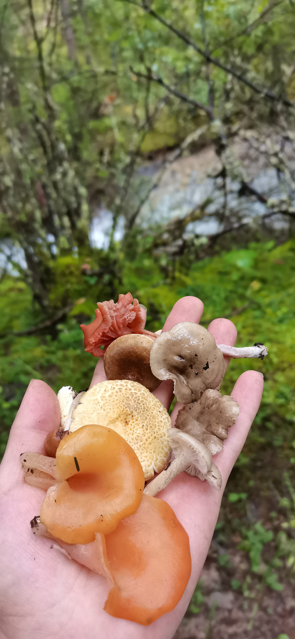 一路走走停停快一个小时终于到了山脚的一个简易营地,这时我才知道爬了那么久终究还没有爬上真正的山。营地中有些早早出发已经下来的徒步爱好者在喝茶休息躲雨,看看人家那身装备,冲锋衣、登山靴、登山棍、登山包......再看看自己大裤衩、平板鞋、小衬衫,也越发觉得对自然过于不尊重了。时间也不早了还要回程,想想还是和女朋友商议往回走了,下次准备充分再来一瞻深处神采。回程路上在林子里面还捡了好几种菌,有的认识有的不认识,纯捡了玩儿图一乐。