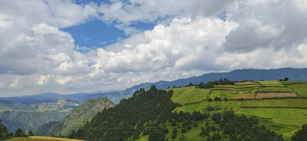 收拾收拾跟着山水激荡的心情,继续上路。国道沿着山势而建,从丽江到香格里拉海拔不断升高,忽而谷底忽而山巅,偶尔溪水瀑布沿山而下,远处群山起伏,云雾缭绕在脚下,这一路仿若入了世外之境,哪还有什么烦恼,只觉得心胸如此开阔。夫天地者,万物之逆旅也;光阴者,百代之过客也。