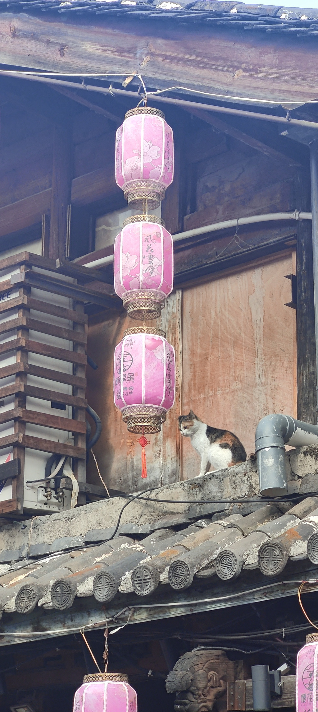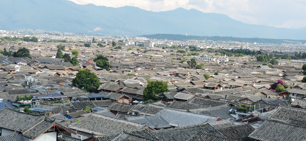 走到山脚古城边缘的巷子,靠近古城的一面全被高高的围墙拦了起来,让人不能从高处一窥古城全貌,围墙上开了一道门靠近一看是客栈,门口打着广告看古城全景、拍照打卡按人收费,再联想长长高高的围墙,只感觉一阵恶心。不过还好找到一处靠山的台阶,爬上去隔着围墙依然能看到脚下的古城,吹着微风,看着古城发了一会儿呆,心神一片安宁。
