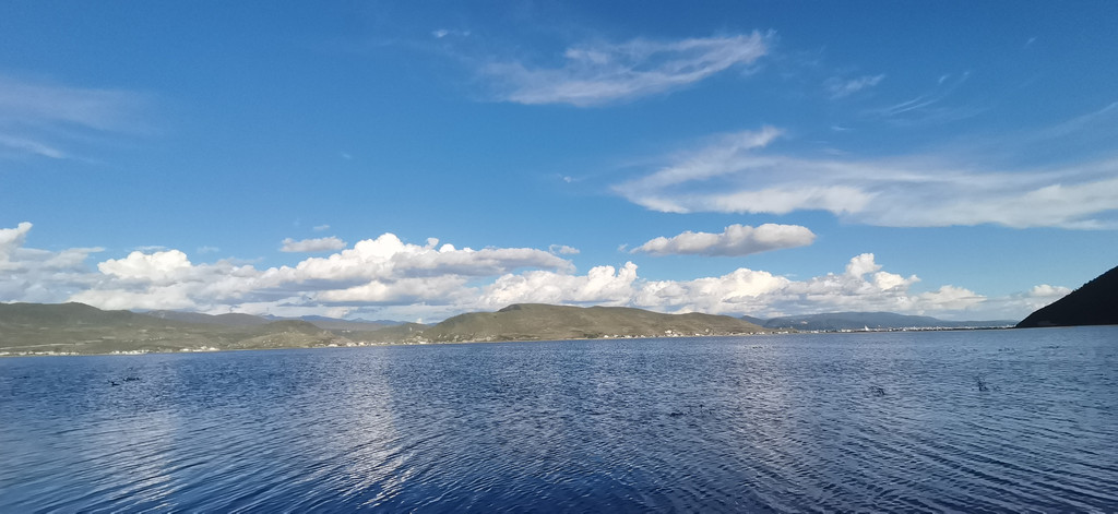 吃完早餐上路已经十一点了,选好目的地,开启导航,打开音乐,一首痛仰的《公路之歌》先安排上,愉快的自驾之旅正式开启。走的过道没有选择高速,一方面是国道路过的风景更多一些,一方面跟女朋友一开始出门就定下了不赶路的基调。过拉市海的时候经过一片村庄,路边大片的农田种着果树,好多本地的爷爷奶奶在路边支一个摊子在卖,丽江的雪桃很出名,果大汁多蜜甜,女朋友也喜欢吃桃,我们停车找了一个摊打算买几个路上吃。是一个很淳朴的老爷爷,摊子上有梨、苹果和桃,爷爷说水果都是自家田里种的,水果也都是早上现摘的,因为就两个人没打算多买,拿了四五个桃,爷爷说这还不是雪桃,雪桃得十一二月份以后才有,总共两斤多收了六块钱,爷爷年纪大没有线上支付码还好钱包里出门前特意揣了点零钱,临走爷爷还送了我几个梨和苹果。很是开心,不是因为占了便宜,而是因为爷爷的热情淳朴,在城市里待久了总觉得这些品质显得那么难能可贵。路上尝了,每种水果都超好吃,尤其是苹果那种自然的味道唇齿留香,和女朋友商量回程的时候还要来买点带回去。