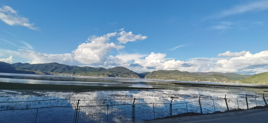 我们去的时候有水有草,清澈碧波的纳帕海将青山蓝天白云倒映其中,周边有放牧的,时不时几匹马在水草交界处奔跑,构成一幅如画的风景。