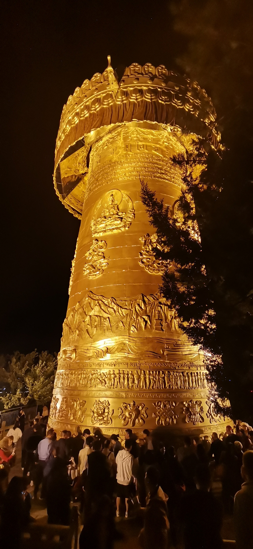 离得老远就看到龟山公园半山腰的硕大的转经筒在夜色中闪耀着金光,我俩决定再去一探究竟。