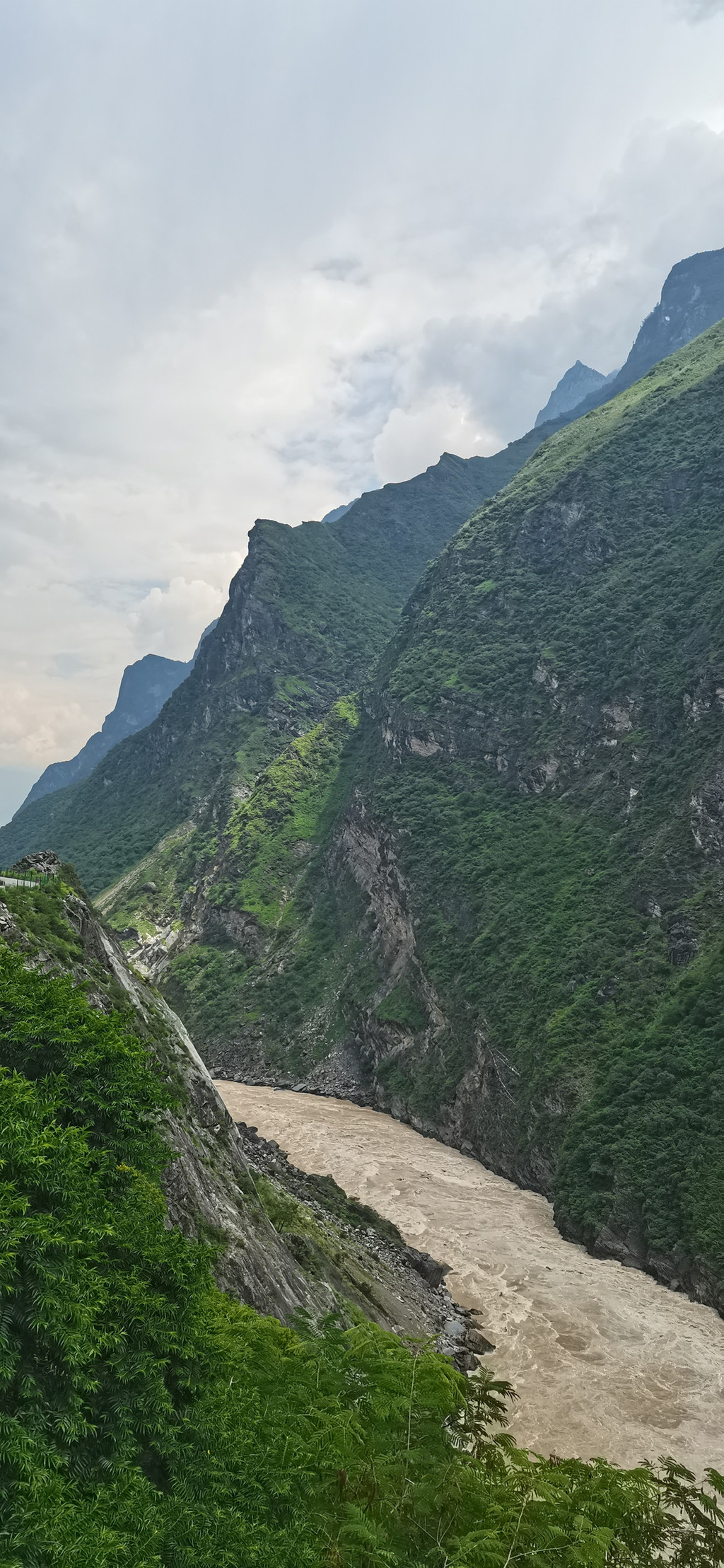 我们去的第一站是虎跳峡,从丽江城里出来一个多小时就到了,结果到景点人忒多,景区对车辆分流在外面等了将近一个小时,还好进去以后险峻的高山、澎湃的江水瞬间消除了等待的烦躁,虎跳峡位于哈巴雪山和玉龙雪上之间,两侧是陡峭高耸的山脉,上游平缓的金沙江水顺着山谷在这汇聚,在地势中汹涌直下,造就莫大声势。那一刻人在大自然面前显得是那么渺小,站在观景台旁向江中望去感到一阵眩晕,激逐的浪花拍打出水汽溢在脸上,轰隆的水声响彻峡谷,仿佛下一瞬就能轻易撕碎周遭的一切。壮观哉!
