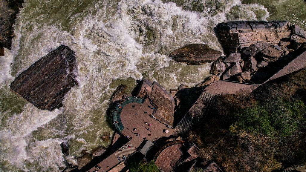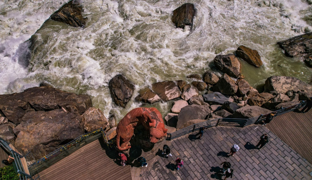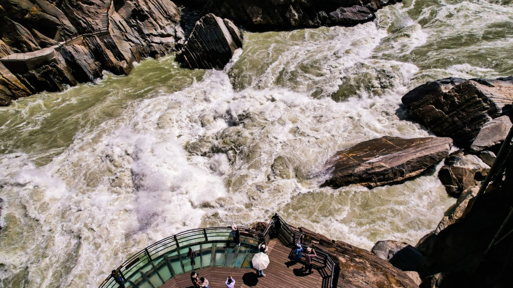 如果说虎跳峡有什么必打卡,当然是赫赫有名的虎跳石!这块巨石仿佛是大自然的杰作,横卧在金沙江中,据说曾有猛虎借此跃江而过,在这里感受江水的奔涌,仿佛能听到大自然的呼吸。