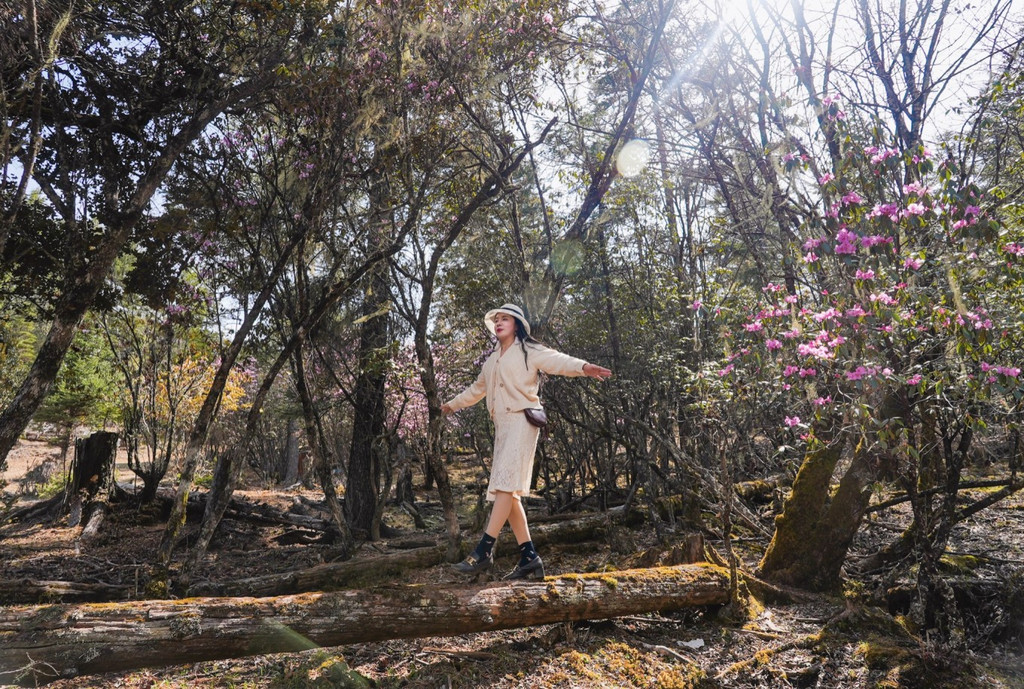 我们大概是第一波来香格里拉追花海的人了吧!5 月开始,香格里拉各地的杜鹃花相继绽放,有大杜鹃、小杜鹃、高山杜鹃、林中杜鹃、大树杜鹃、矮杜鹃……成片成片地怒放在路边、林间、溪水畔,简直美得“不可方物”!