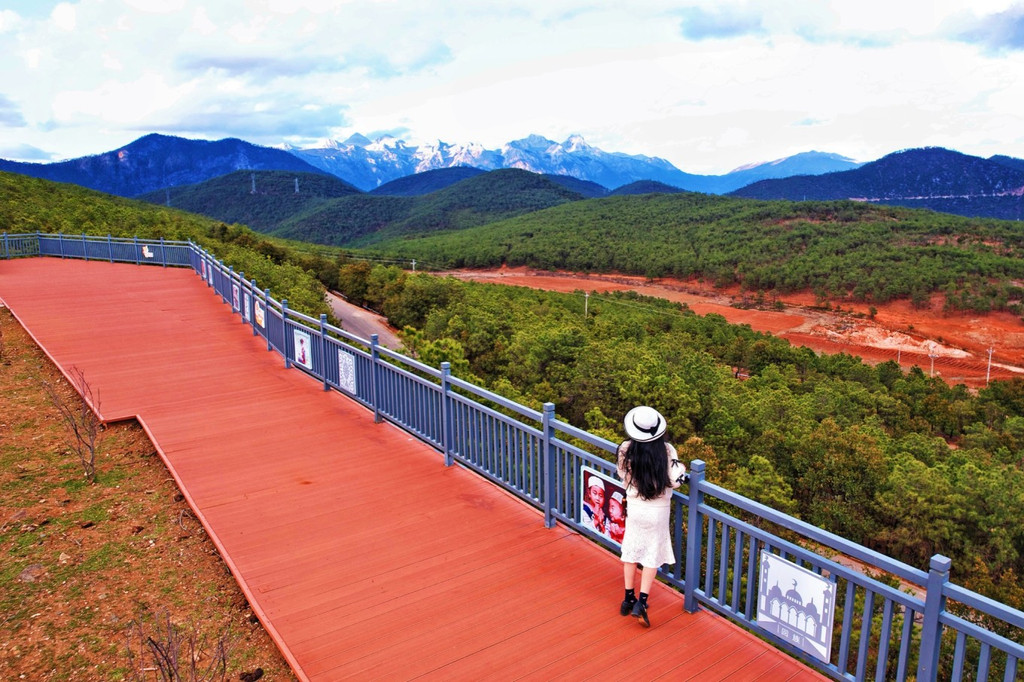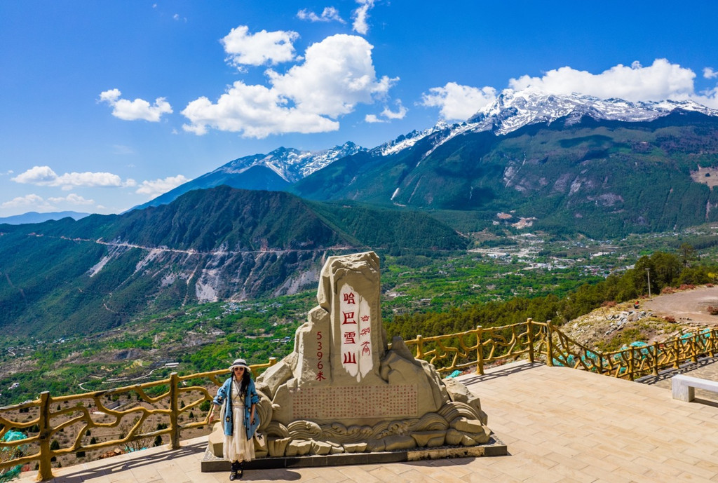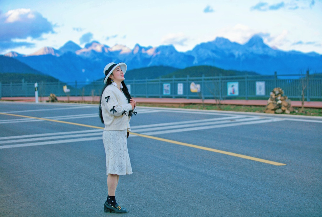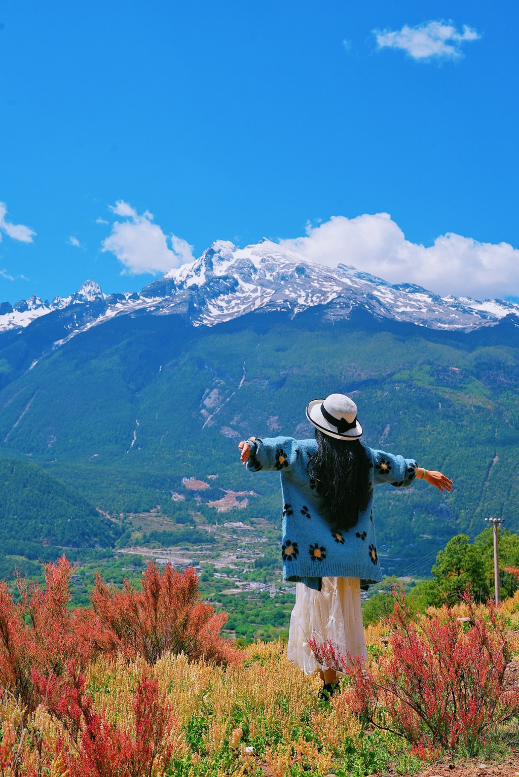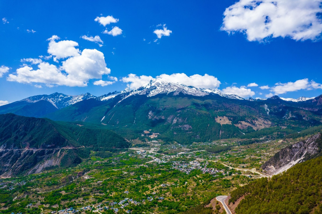 在哈巴观景台,可一览洁白无瑕的哈巴雪山,它与山脚的几个古朴村寨遥相呼应,仿佛人间仙境。