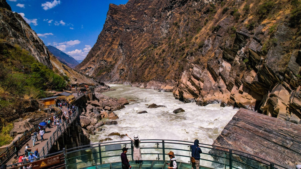随后前往上虎跳,抵达景区后我选择了一条省力路线——扶梯直接下到景区徒步。