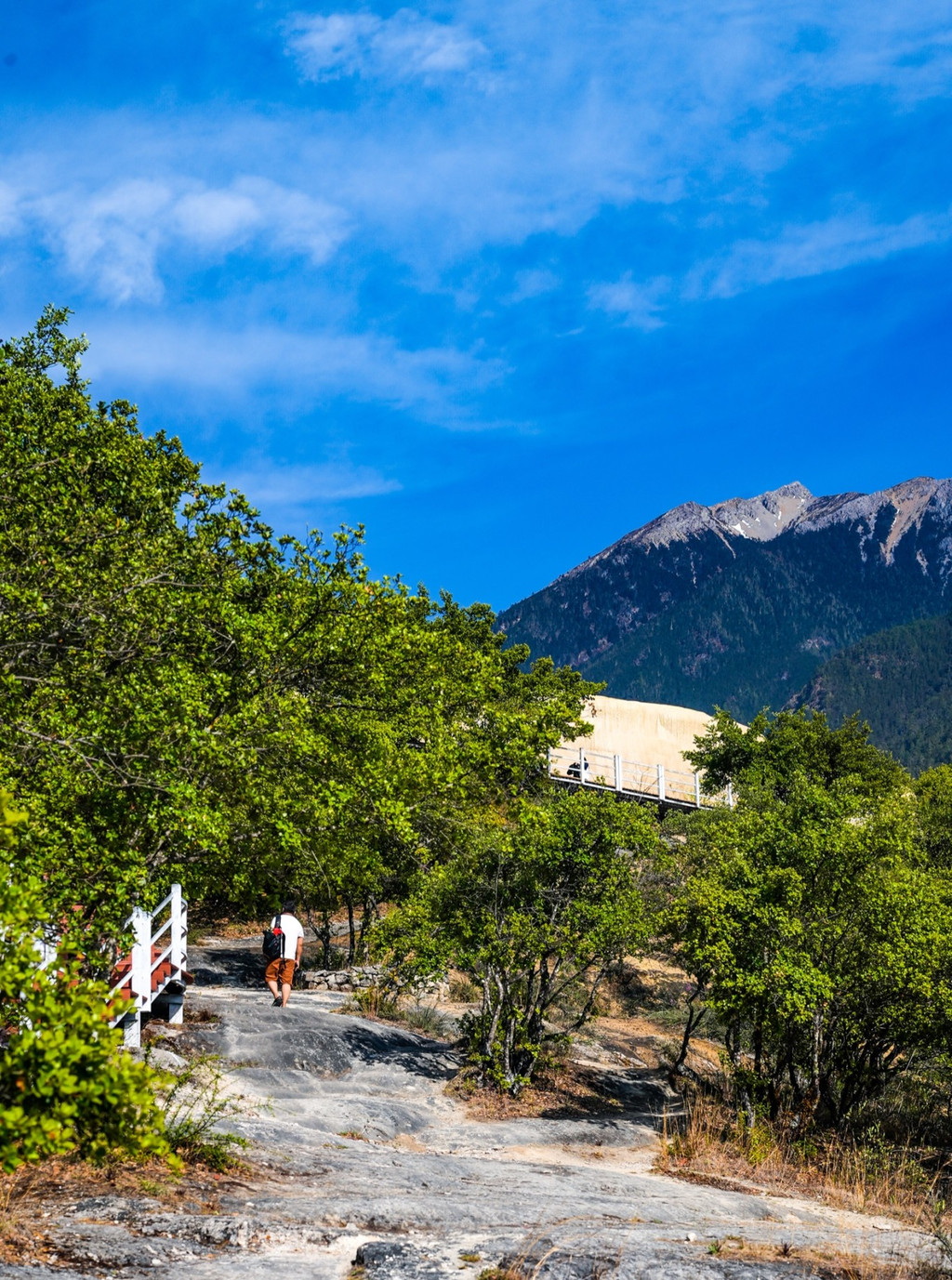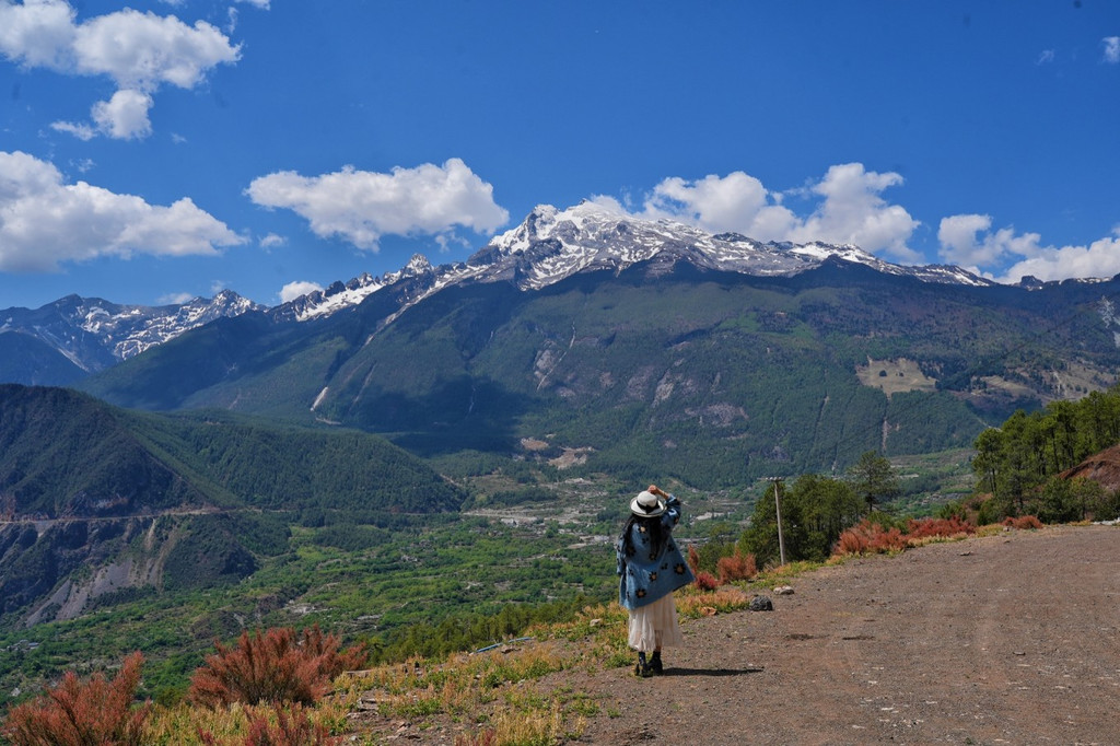 哈巴雪山在远方静静伫立。“哈巴”为纳西语,意思是金子之花朵。哈巴雪山与玉龙雪山隔虎跳峡相望,最高峰海拔5396米,而最低江面海拔1550米。山势上部较为平缓,下部则陡峭壁立,望之险峻雄伟而又美丽神秘。那座巍峨的山峰,像是大地的守护者,屹立在天地之间,守护着这片纯净的土地。望着那雪山,心中涌起一股敬意和敬畏之情。