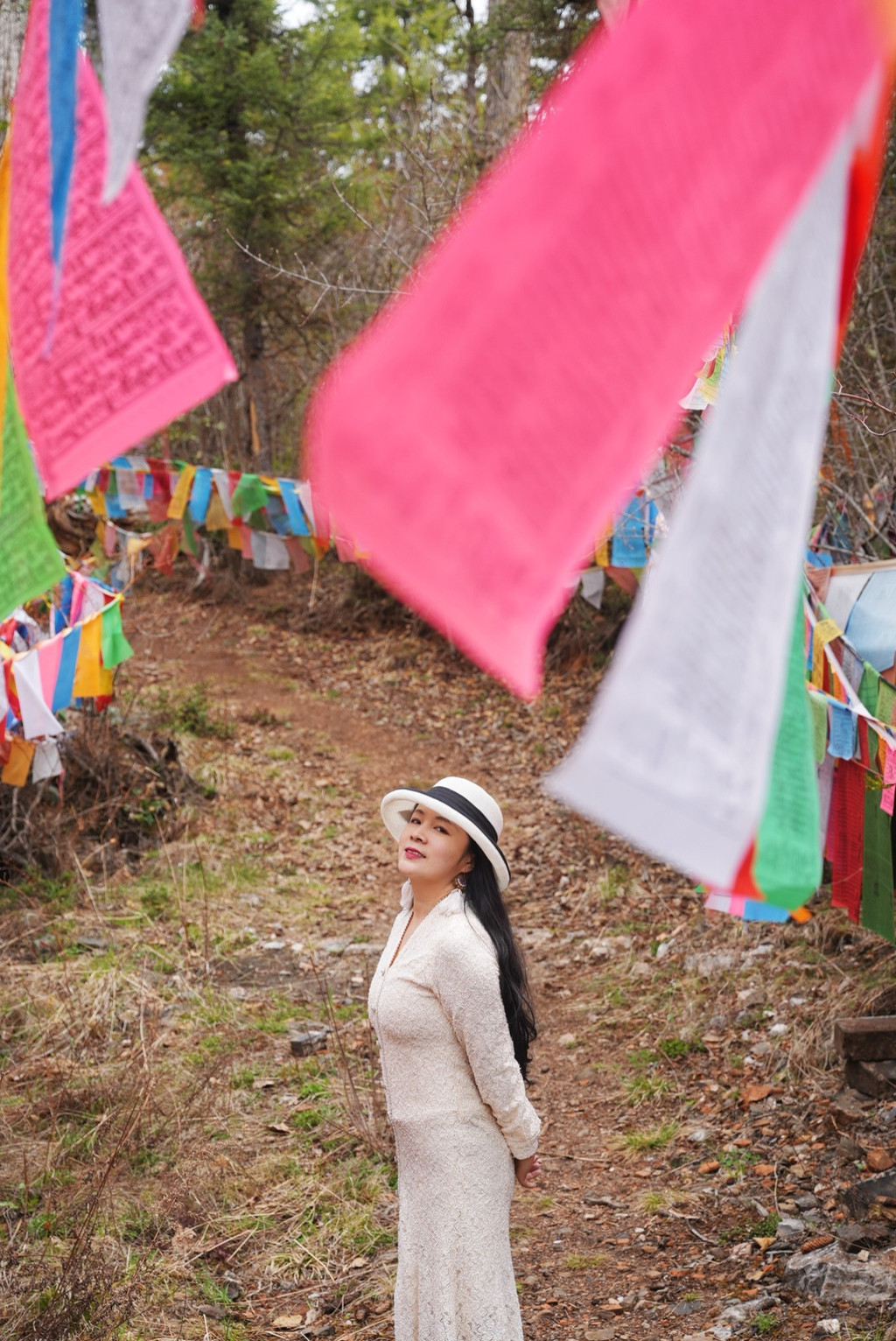 在通往活动现场挂满经幡的森林之路上,我静静的体会着这的美好。