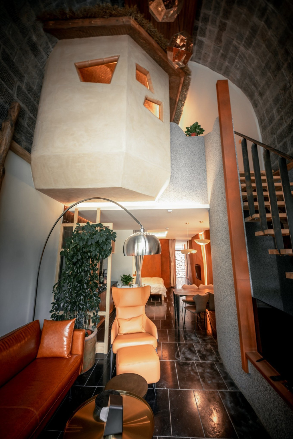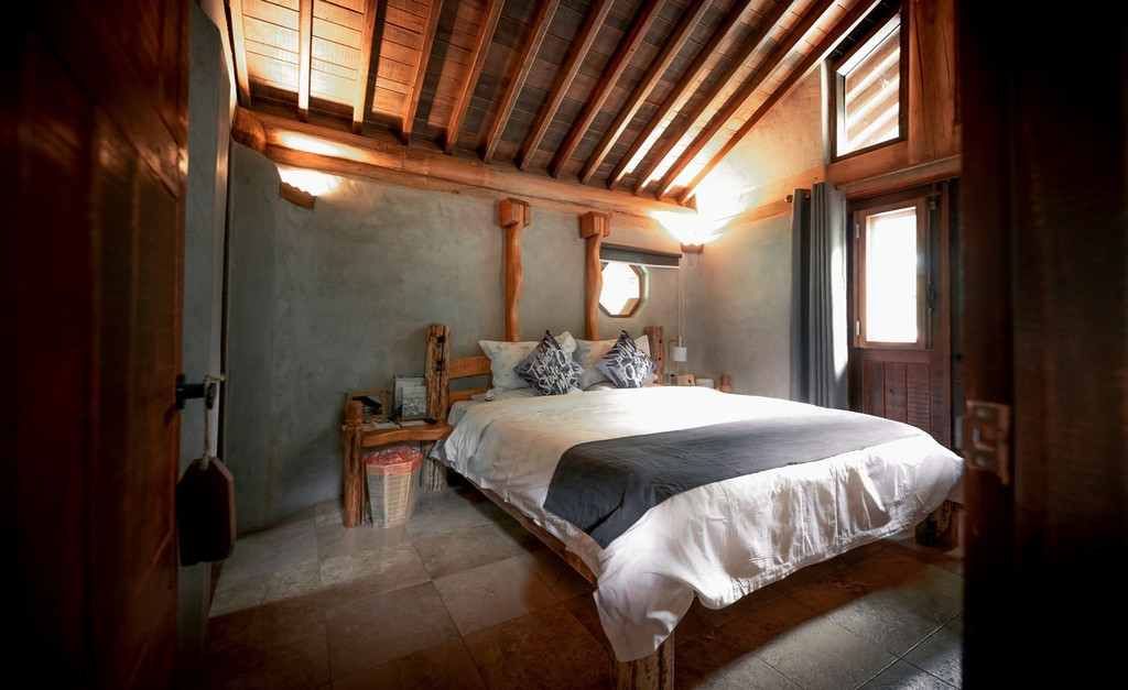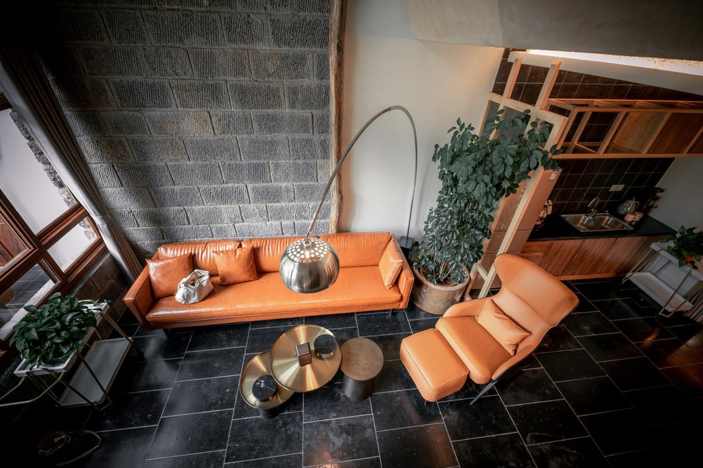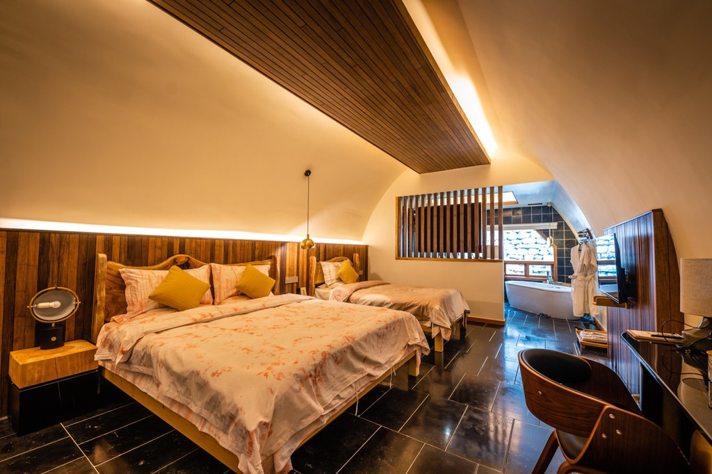 房间内部却采用城市中流行的“Loft”阁楼形式,休息区,生活区,办公区等区域界线分明,民宿的每一个细节之处,也都做到了极致。基本上都是全部纯手工打造的实木家具。每个房间又都各不相同。