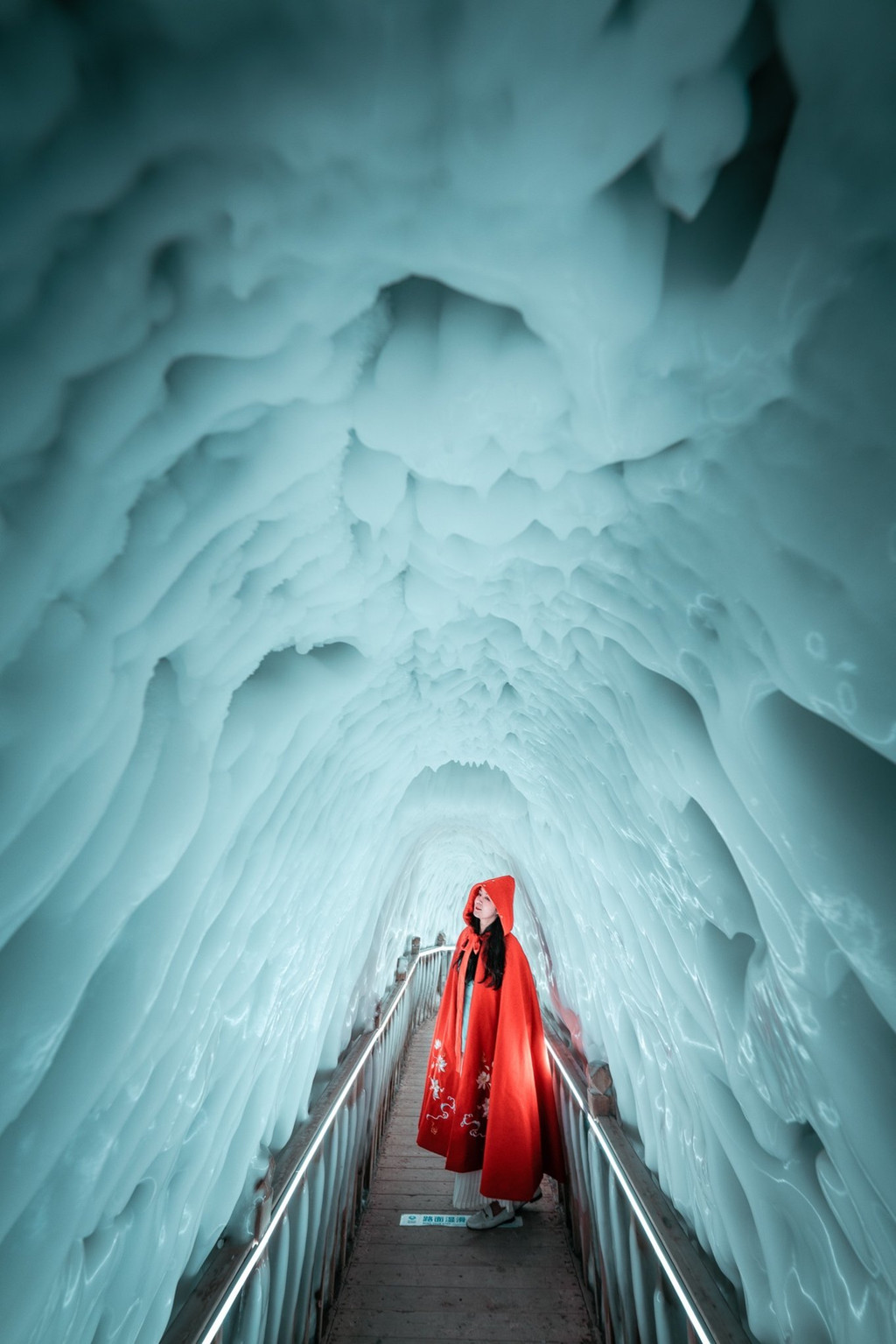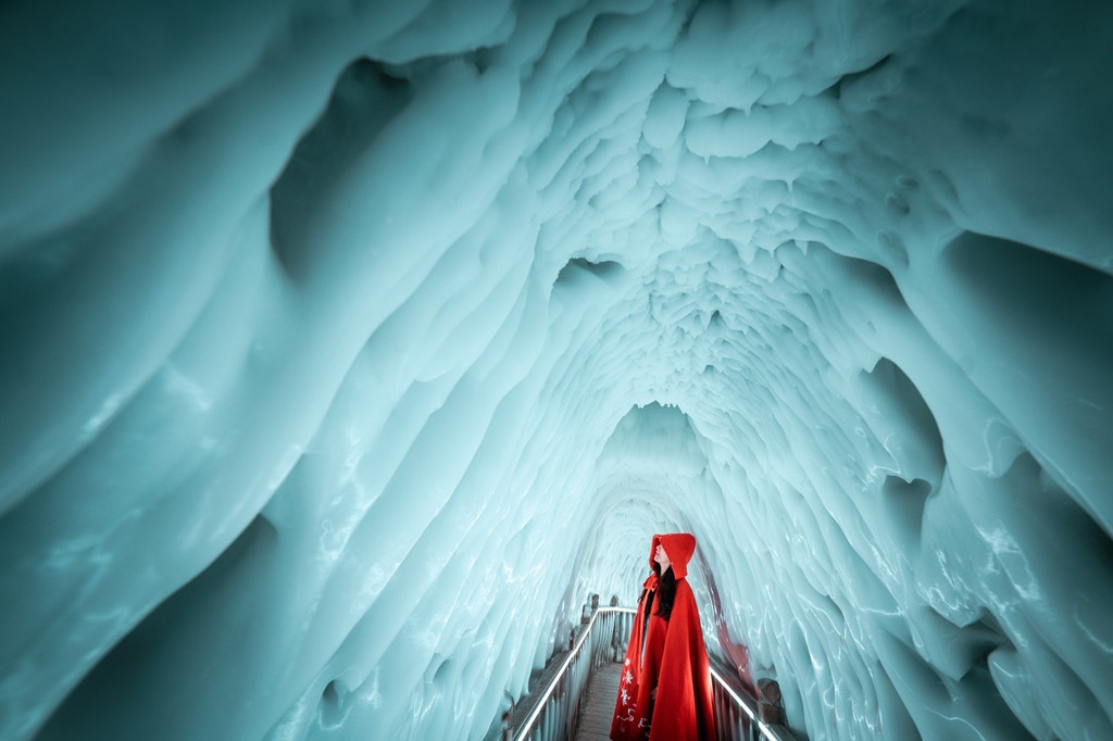 穿衣指南:洞内常年温度零下10摄氏度以下,在洞口有免费提供棉服或红色斗篷(拍照用,不抗冻),如果非常怕冷,可额外准备长裤长袖,一般洞内停留时间30分钟左右,出口处可领取姜茶暖胃。