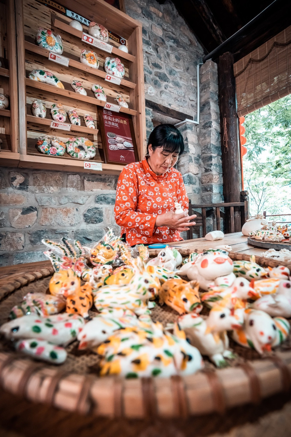大姐一边忙碌,一边给我们讲年俗知识。说说笑笑中,各种玲珑逼真的花馍便成型了。