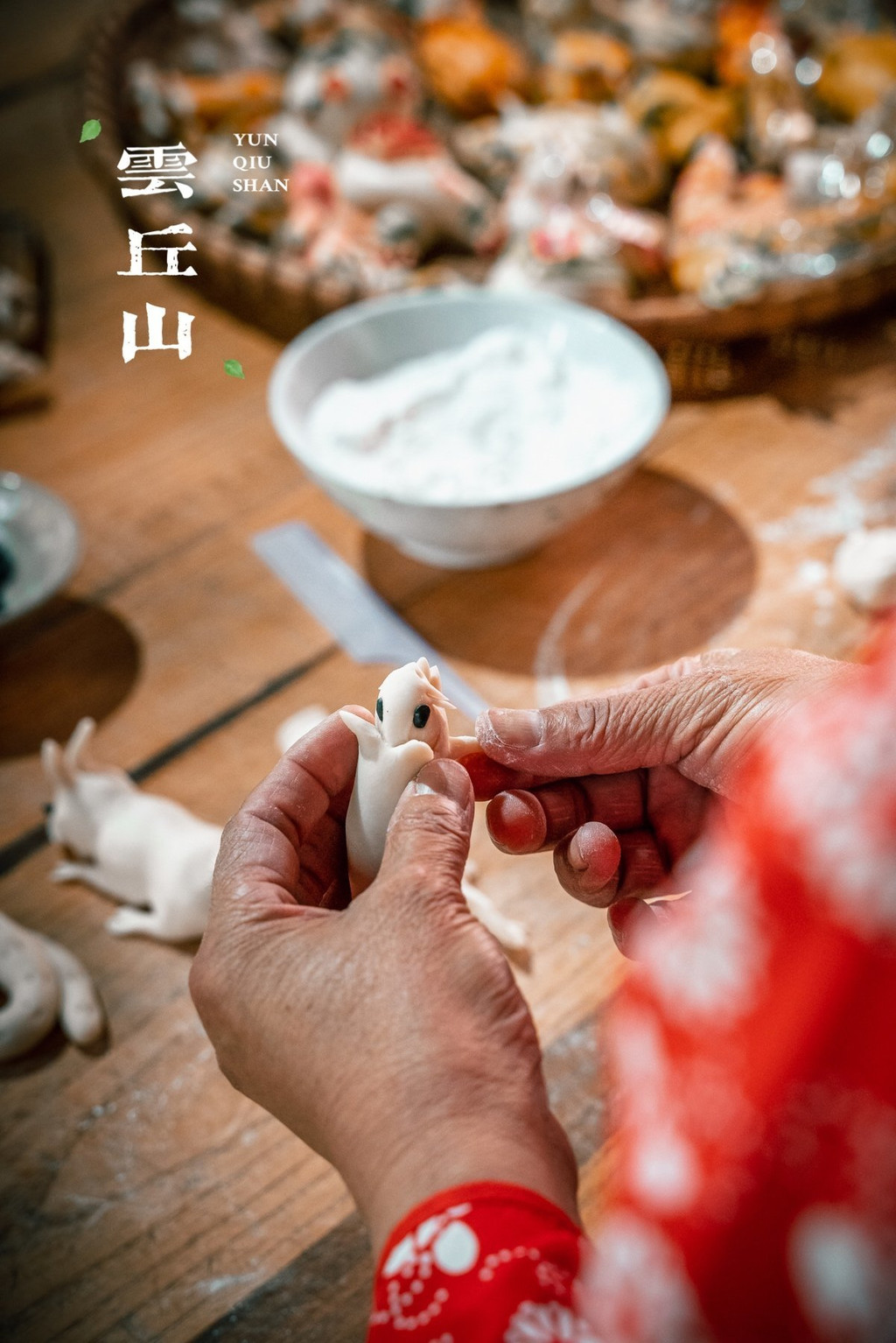 接着,大姐用剪刀在捏成的初坯上剪出各种造型,又用篦子和筷子在上面印出图案花纹,再将各式各样的装饰物点缀其间,有做眼睛的花椒仁和龙眼核、做嘴巴的红豆、做牛角的红辣椒……一切简单易得的东西在大姐的手里变得神气活现、意趣盎然。