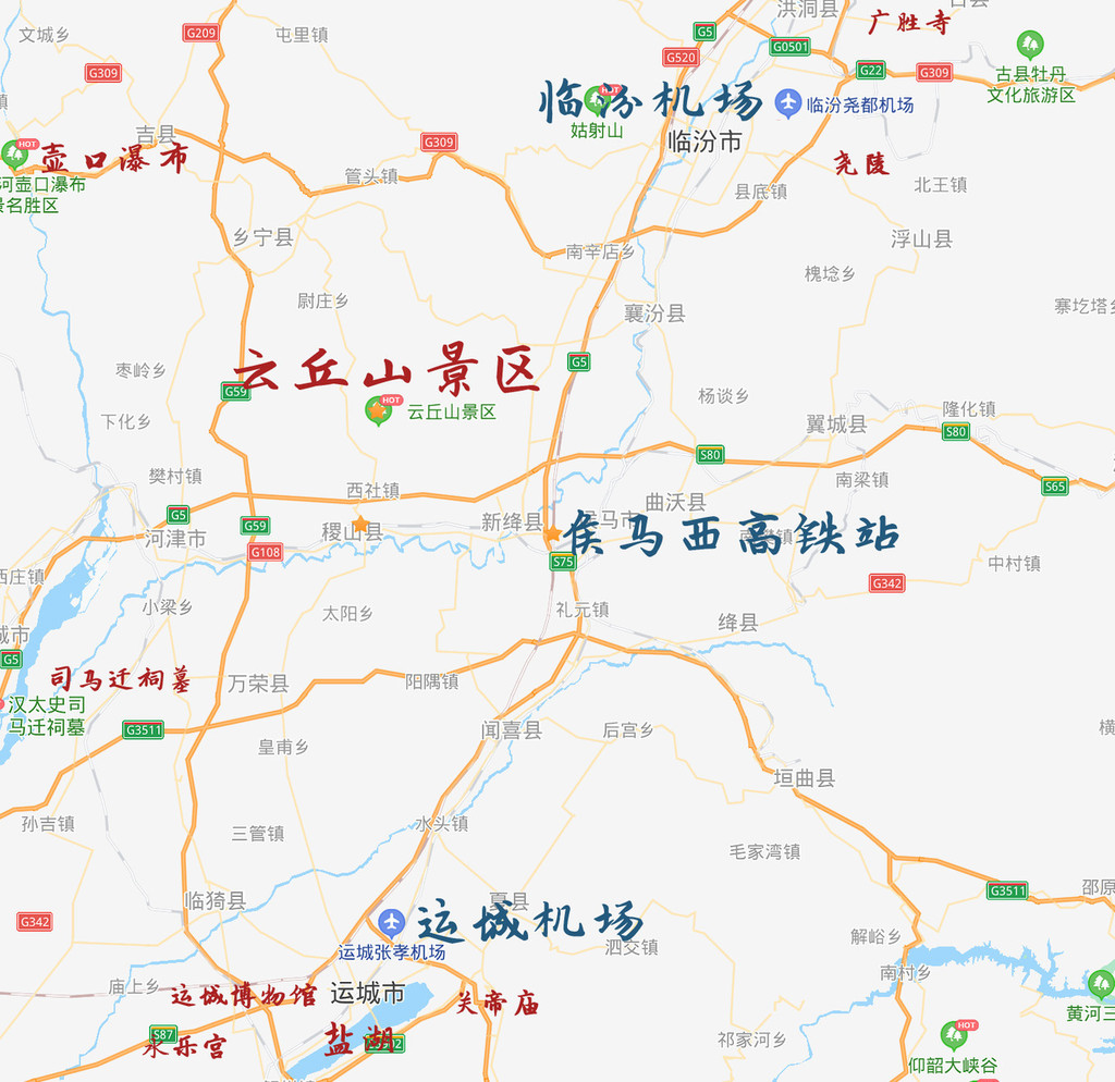 ?自驾游周边景点:云丘山所在的晋南区域也有颇多值得一看的景点,若是来一趟山西不容易,大可以花上5天时间把周边景点都游玩了,值得一去的有广胜寺(飞虹塔、元壁画)、尧陵、壶口瀑布、司马迁祠墓、运城博物馆、永乐宫(巨幅元壁画)、盐湖、关帝庙(运城是关羽老家)。
