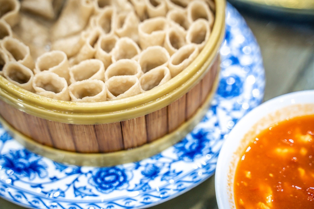 见我们一行人到来,看店的大姐就端出来一盆面,随着大姐不断的揉搓、拉拽、挤捏、摔滚……面团在温度和外力的共同作用下增添了无穷活力,像有了生命一般。