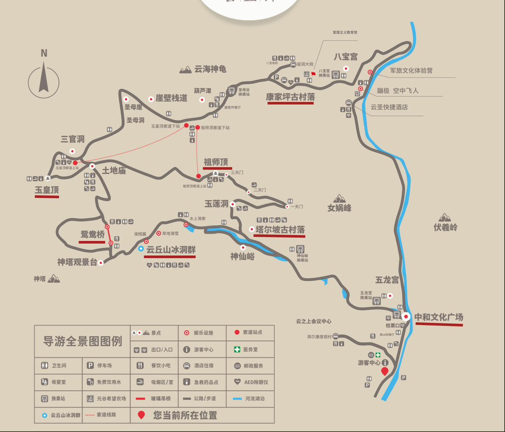 ?交通指南:前往玉皇顶、祖师顶可先乘坐观光车到圣母谷换乘站乘坐缆车上山。