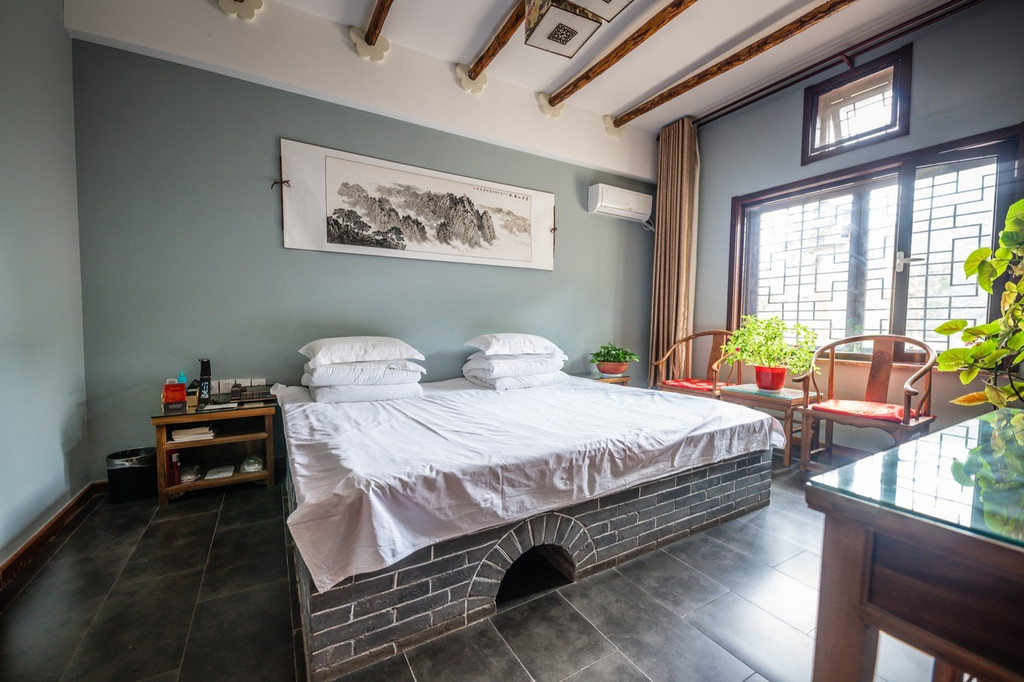 而整个康家坪村价格最贵,条件最好的住所当属“五行院”,这里堪称窑洞民宿的代表。它是一处以金、木、水、火、土命名房屋名称的院落。此处院落的每间房屋,均分为上下两层,设有生活区、办公会客区等功能区,极其适合家庭居住。
