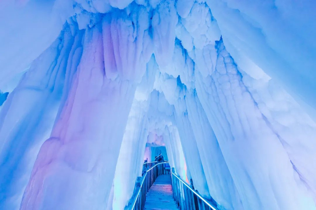 云丘山的冰洞群隐藏在深山之中……据说在云丘山地区,现已发现有14个冰洞群。冰洞内四壁皆冰,常年不化。目前开放的1号冰洞总长100余米,最宽处约12米,最高处约15米。洞中的冰笋、冰柱、冰瀑晶莹剔透,在灯光的照射下呈现出梦幻般的景象。进入洞内,这就开始了一场神秘震撼的洞内奇观,视觉上的饕餮盛宴。