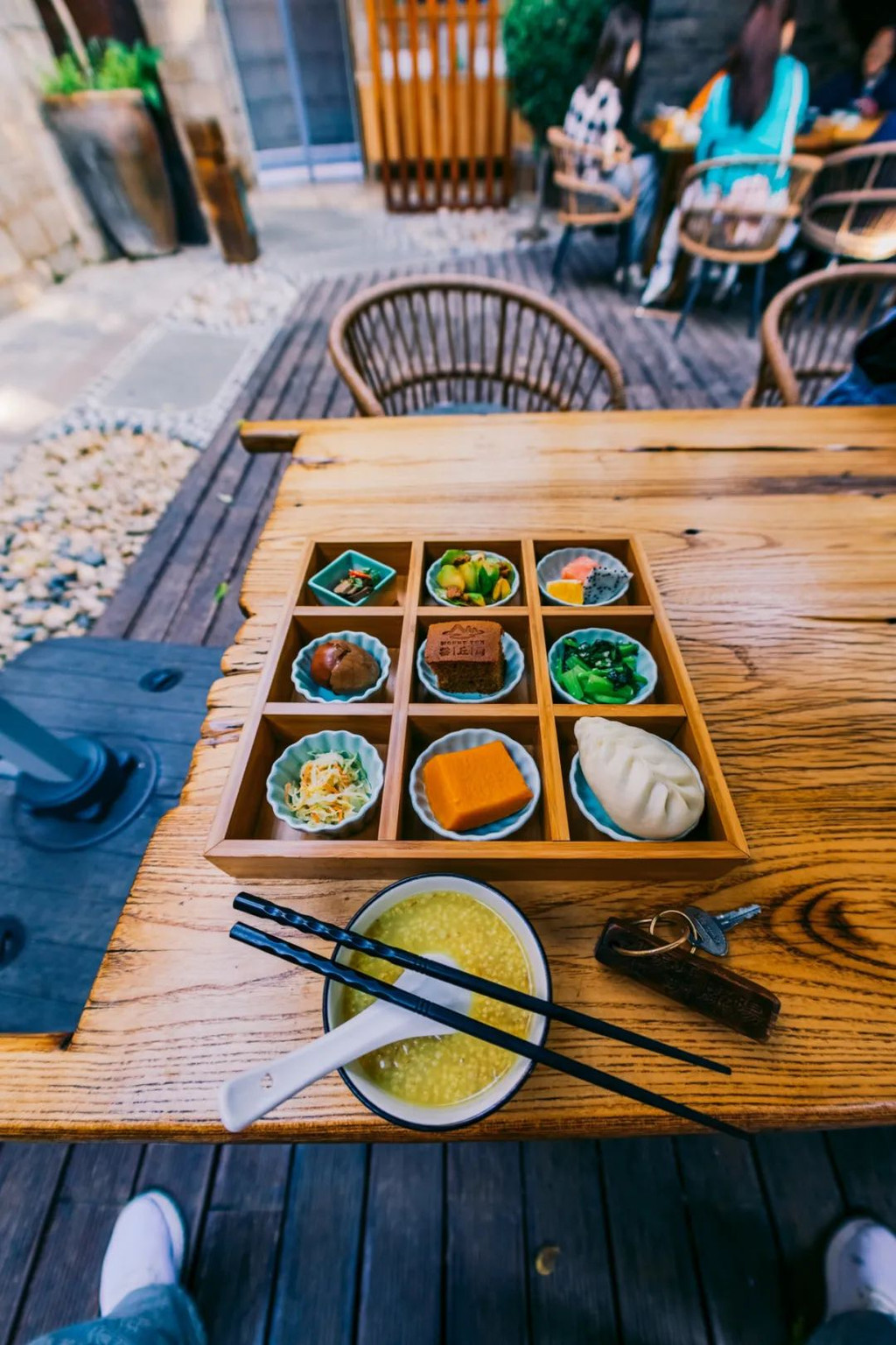 康家坪的山珍坊将云丘山的各种时令蔬菜、山养黑猪肉、山珍美味野生菌等,做成养生菜品奉献给客人,在体验美味的同时获得健康。在静谧美丽的清晨,一份九宫格早餐美味又养眼。