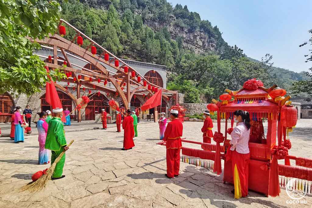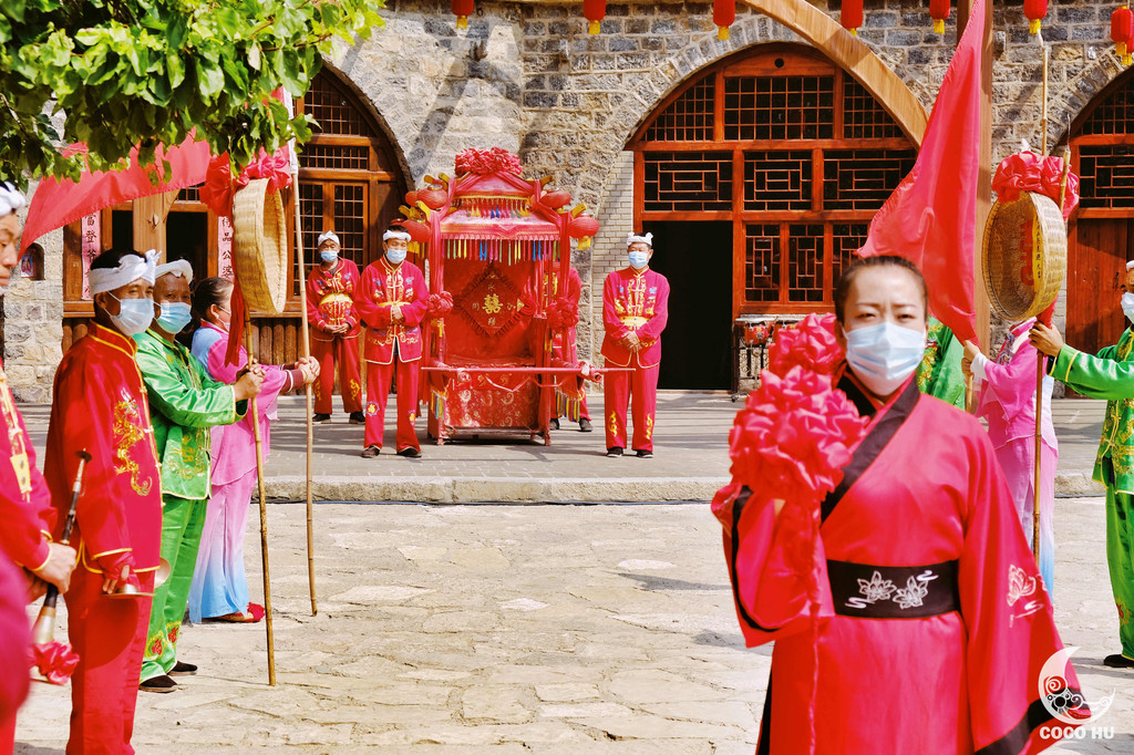 古村最值得一看的,便是《印象·云丘山》特色婚俗体验情景剧。在村里的小广场上,一番锣鼓喧天,人们都纷至沓来。接亲娶媳妇儿的队伍整装待发,大家也都掏出手机和相机,准备完整记录下这喜庆的时刻。